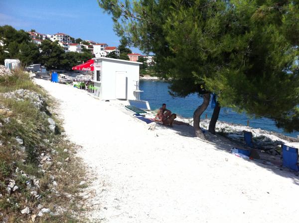 Korszerűen berendezett és felszerelt apartman Ciovo szigetének csendes részén, pontosabban déli oldalán, kilátással a tengerre. A lakás 30 m2-es, valamint egy terasszal (15 m2) és egy tengerre néző erkéllyel (9 m2) rendelkezik. A parkolóhelyek közvetlenül a lakás előtt találhatók, a kertben pedig grill is található. A létesítmény 100 méterre található a tengertől és 10 perc sétára az éttermektől és üzletektől.