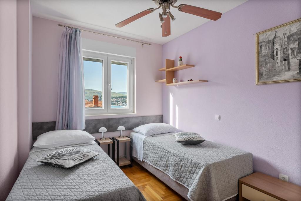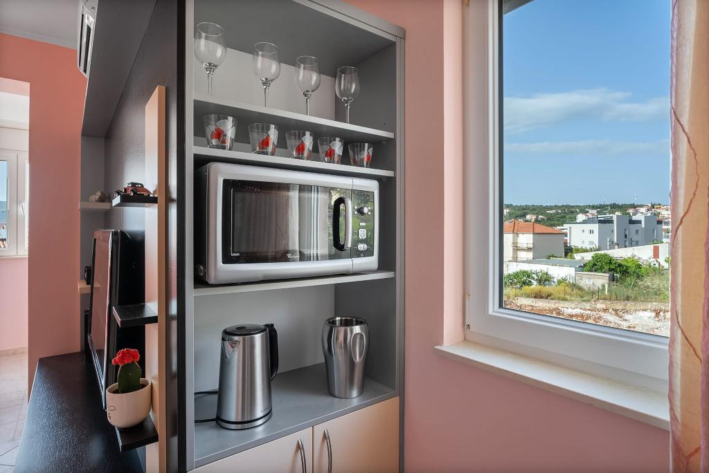 Az Apartment Summer memories egy tágas és modern berendezésű apartman egy tengerre néző épület 2. emeletén, 15 perc autóútra a nemzetközi repülőtértől. Az apartman gyönyörű kavicsos strandok közelében található, amelyek egészen Trogir óvárosáig húzódnak. A legközelebbi strand 4 perces sétára található. Az apartmanhoz erkély tartozik, ahol élvezheti a reggeli kávéját és a tengerre néző kilátást. 2 hálószobával rendelkezik, melyek közül az egyikben lehetőség van 2 ágy összenyitására egy franciaággyá. A lakásban 2 db klímaberendezés található. Biztosított parkolóhelyet biztosít a járművének az épület előtt. A közelben található: egy szupermarket, kávézók és éttermek a tengerparton.