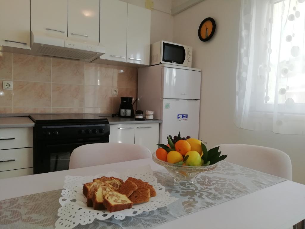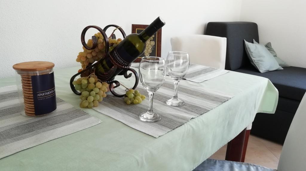 A lakás szépen berendezett, tiszta és gyönyörű nagy terasszal rendelkezik. Az apartmanok tulajdonosai barátságosak, előzékenyek, minden dicséret. Nem messze az apartmantól vannak kis öblök, gyönyörű strandok, tiszta, kék-zöld tenger. Határozottan ajánlom!