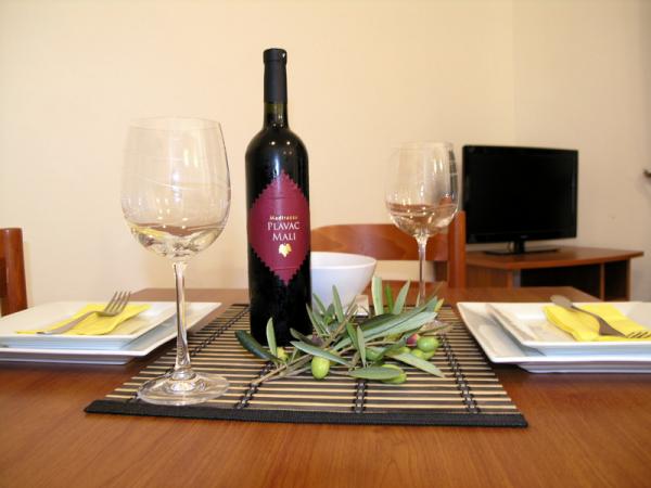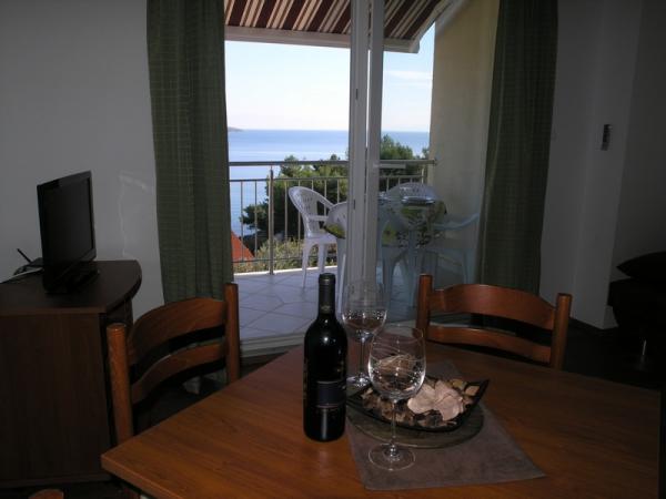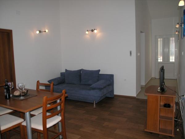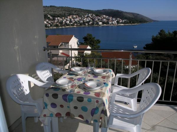 Örömmel mutatjuk be négy apartman található, a déli oldalán Ciovo, közel a város Trogir Okrug Gornji. Ez az egyik legvonzóbb turisztikai célpontok Horvátországban, a 2670 évi napsütéses órák. A közeli város, Trogir (2 km) és Split (30 km), amelyek védelme alatt UNESCO, biztosítja képes érzékelni több mint 2000 éves kultúra. Szeretettel várjuk a mi apartmanok, kilátással a közép-dalmáciai Brac és Solta, ahol talál egy pihentető légkörben töltött kényelem és a magánélet. Modern és légkondicionált két hálószobás apartmanok Luce és Maja és egy hálószobás apartmanok Marin és DUJE kínál kellemes időtöltést. Közel a homokos strandtól (80 m), kilátással az Adriai-tengerre. Minden apartman teljesen felszerelt műholdas TV, WiFi átalánydíjas internet kapcsolat minden benne van az árban. Az alapfelszereltség magában ágynemű, törölköző, konyha krpe.Voda a házban iható a csapvíz. Saját parkoló áll rendelkezésre (egy per apartman). Szeretettel várunk, hogy tölteni szabadságukat a lakásunkban, hogy élvezze a mediterrán hangulatot és gyönyörű kristálytiszta víz ..