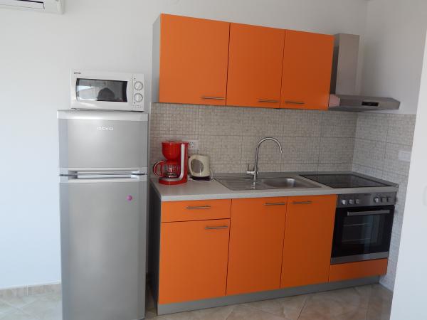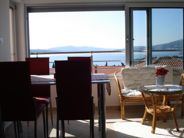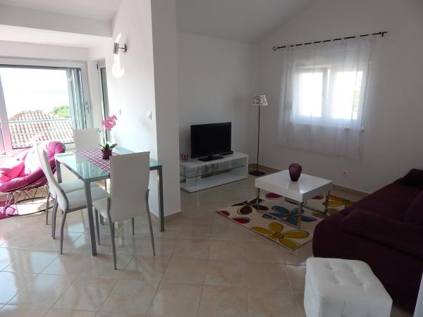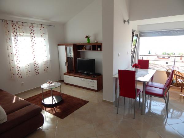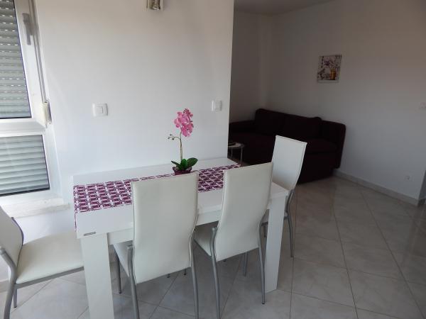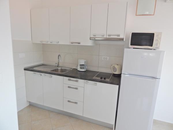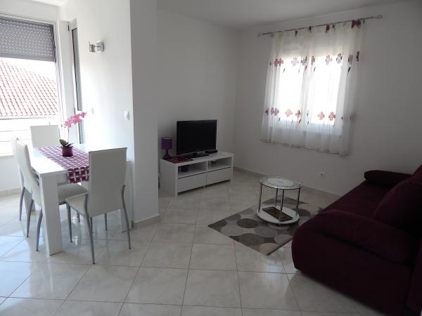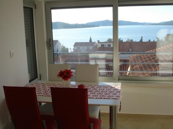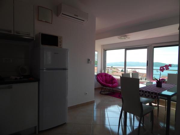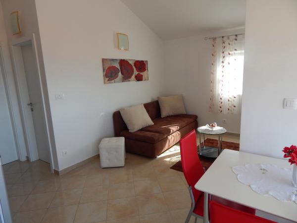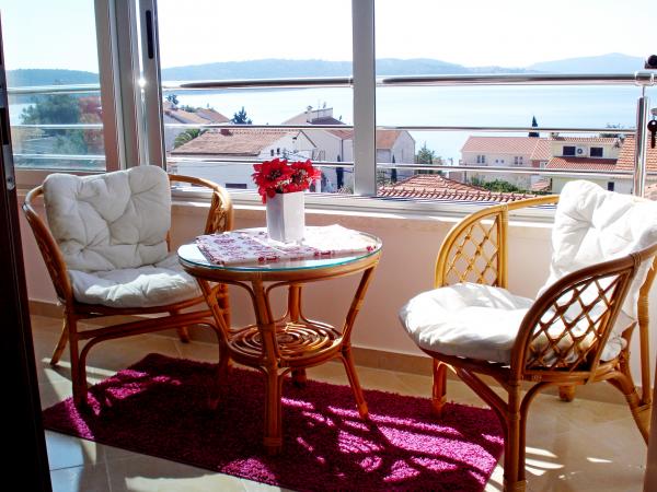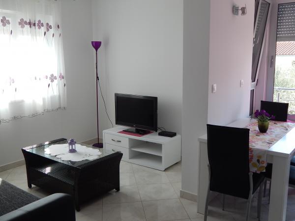 Új, légkondicionált, modern berendezésű és teljesen felszerelt apartmanok, melyek a tengerre és a legközelebbi strandra 80 méterre találhatók. Minden apartman ingyenes internet-hozzáféréssel (WiFi), műholdas LCD TV-vel felszerelt. Okrug Gornjiban találhatók, távol a központtól Trogir történelmi városa 1,5 km. Az apartmanok 2-4 fő részére egy hálószobával és egy kanapéval, felszerelt konyhával (tűzhely, sütő, hűtőszekrény, kávéfőző, gyorsforraló), nappali, fürdőszoba és üvegezett erkély. A vendégek használhatják a közös mosógépet. A szálláshely előtt ingyenes parkolási lehetőség és grillező áll rendelkezésre. A legközelebbi étterem és üzlet mindössze 100 méterre található. Bárok 250 méterre vannak.