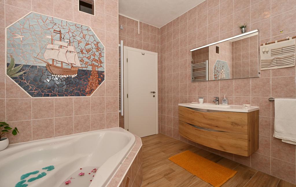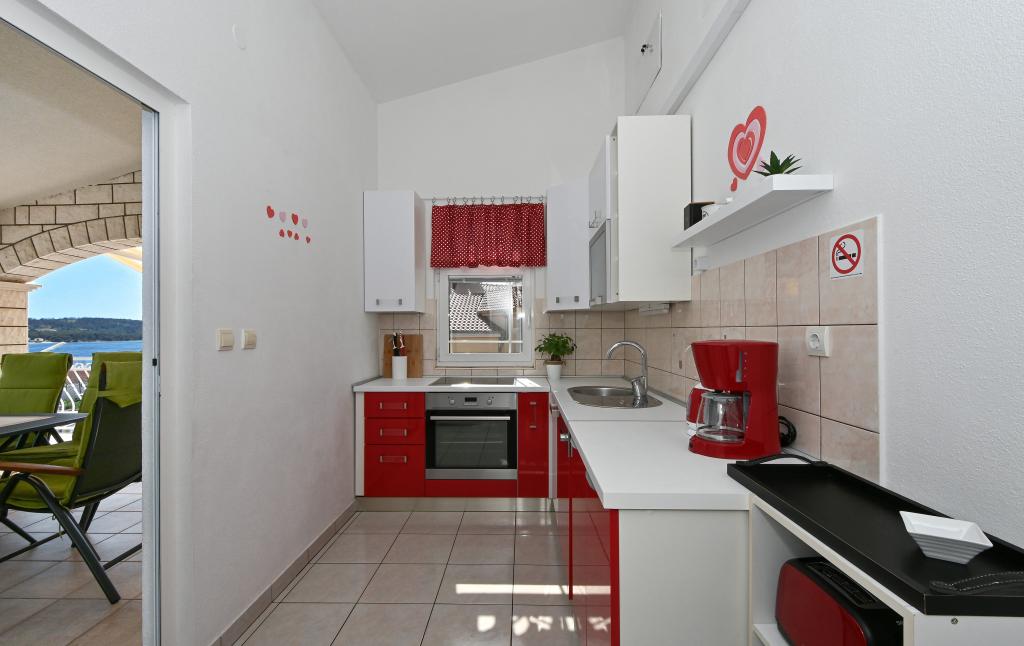 A Villa Ljube a Rožac autótábor közvetlen közelében található, 1,5 km-re Trogir központjától. A Villa Ljuba teljes kapacitása 15 fő. Az apartmanok SAT TV-vel és WLAN internettel felszereltek. A vendégek használhatják a létesítményen belüli grillezőt. A Villa első emeletén található egy nagy apartman, gyönyörű kilátással a tengerre. Az apartman tágas, tengerre néző erkéllyel rendelkezik. A második emeleten található egy modern kialakítású, tágas terasszal rendelkező apartman, mely 8 fő befogadására alkalmas. A ház tulajdonosai a földszinten laknak, és mindig készek válaszolni minden kérdésre és segítséget nyújtani. Az erkélyről gyönyörű kilátás nyílik a tengerre és az egész öbölre. A Villa Ljube a strandtól 150 m-re, egy csendes mellékutcában található, túl nagy zaj és forgalom nélkül.