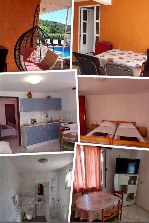 A modern és modern felszereltségű apartmanok úszómedencével Okrug Gornjiban, Čiovo déli oldalán, gyönyörű kilátást nyújtanak a tengerre, valamint Šolta, Brać és Hvar szigeteire. A létesítmény 10 perc sétára található a strandtól, 15 perc sétára a városközponttól ahol posta, bank, gyógyszertár, szupermarket... a létesítmény 2. emeletén 5 fős apartman található, egy 3 fős apartman a földszinten. Minden apartman saját emelettel, saját bejárattal és saját terasszal és félig fedett parkolóhellyel rendelkezik. Minden apartmanhoz közös medence, kandalló és udvar tartozik.