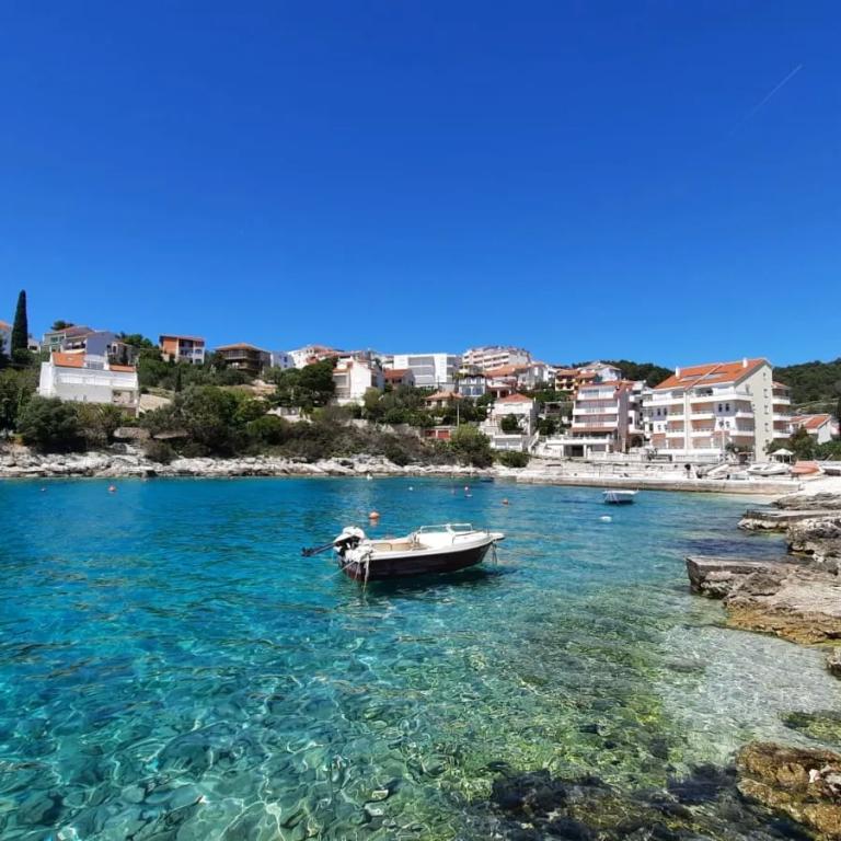 Teljesen és korszerűen felszerelt apartmanok terasszal, kilátással a tengerre és a szigetekre. A tenger és a strandok közelében található, 20 perces sétára a központtól.