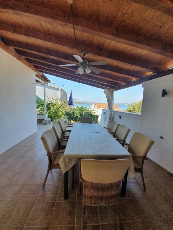 Teljesen felszerelt apartmanok egy házban Okrug Gornjiban. Távolság a strandtól 200 m (kb. 3 perc séta), a központtól 400 m. Strandlétesítmények: kávézó-bár, éttermek, üzletek, ATM-ek, jetski, hajóbérlés, robogóbérlés, busz- és hajóbérlés Trogirba, turisztikai információk, stb. 1. APARTMAN (A6+2): A ház teljes földszintje a rendelkezésére áll, amely 3 hálószobát (franciaágyas szobák), egy nappalit légkondicionálóval (pótágyat - kanapét tartalmaz), konyhát, fürdőszobát és egy további WC-t foglal magában. A tágas, emelt terasszal rendelkező udvaron grillezhet, használhatja a kültéri zuhanyzót, vagy csak a tengerre nézhet. 2. APARTMAN (A4): Újonnan átalakított apartman a ház első emeletén, tágas terasszal és gyönyörű kilátással a tengerre. 2 hálószobát (franciaágyas szobák), egy nappalit légkondicionálóval, egy teljesen felszerelt "nyitott terű" konyhát és egy fürdőszobát tartalmaz. 4 parkolóhely biztosított az udvaron belül.
