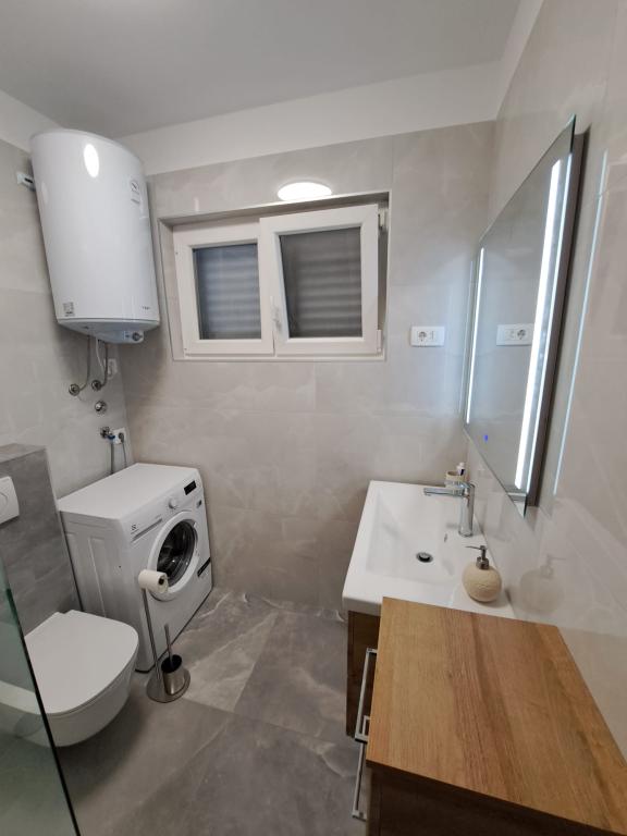 Apartman hatalmas terasszal, tengerre néző kilátással és külső zuhanyzóval. Teljesen felszerelt és kényelmes. Csendes környék és nagyon közel a strandhoz. A tulajdonosok nagyon segítőkészek, kedvesek és udvariasak voltak. Horvát borral és csodálatos házi olívaolajjal fogadtak minket. Nagyon szépen köszönöm a csodálatos vendégszeretetet.