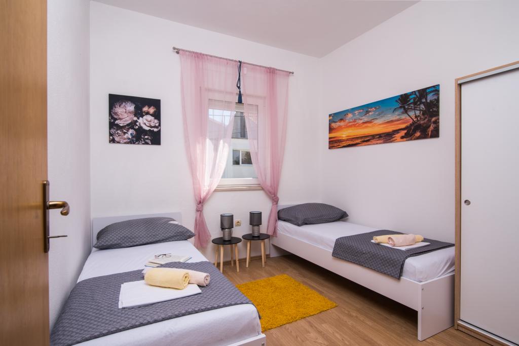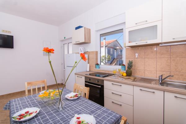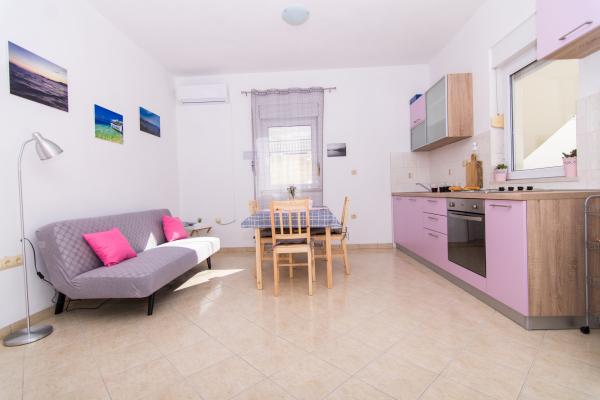 Teljesen és modernül felszerelt apartmanok Okrug Gornji csendes részén, 150 méterre a városközponttól. Az apartmanokban minden megtalálható, amire szüksége lehet, és ami a lehető legkellemesebbé teszi az ittlétét. A városközpont - 5 perc sétára (posta, piac, üzletek, kávézók, éttermek, gyógyszertár közelében) és az összes strand közelsége még érdekesebbé és vonzóbbá teszi a szállásunkat. A csendes környezet lehetővé teszi, hogy az ittlétét a lehető legkellemesebbé tegye, miközben csendben kortyolgatja reggeli kávéját az apartman előtti teraszon.