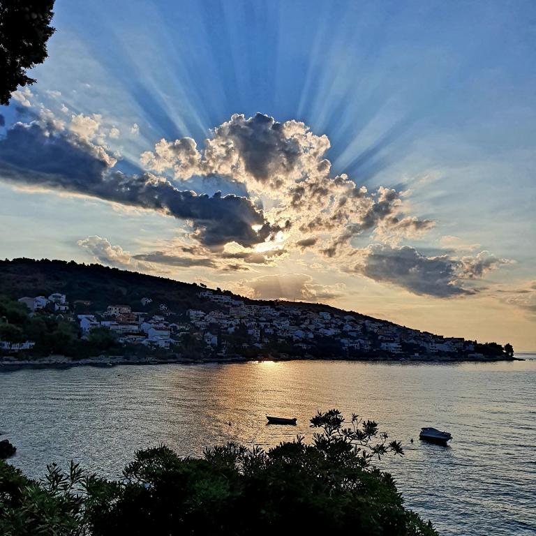 Apartmanok Ciovo szigetén található, teljesen tengerre néző, teljesen felszerelt és modern felszereltségű, csendes településen, kilátással Brac és Solt szigetére. Ideális hely a békés és pihenésre. Minden apartmanban 2 hálószoba, nappali, konyha, fürdőszoba, előszoba és egy nagy terasz található. Parkolás biztosított az udvaron. Tökéletes mikroklíma. Okrug Gornji 500 méterre Trogir 5 km-re a ház. Rendszeres csónakvonal Trogir fővárosától, Okrugtól. A strandon Okrug kavicsos és olyan szolgáltatásokat kínál, mint például éttermek, hajóbérlés, robogók, búváriskolák, hajókirándulások a szigetekre. A közelben teniszpályák is vannak. Split mintegy 30 km-re, a repülőtér 8 km és Sibenik 45 km, Krka Nemzeti Park 50 km.