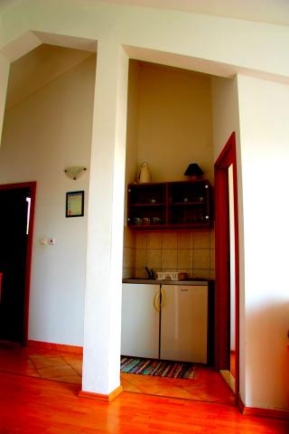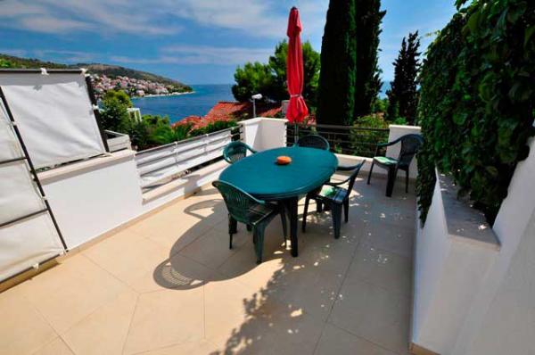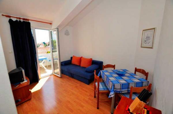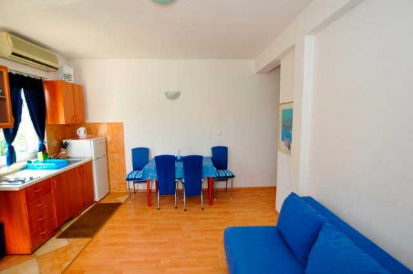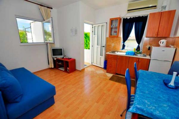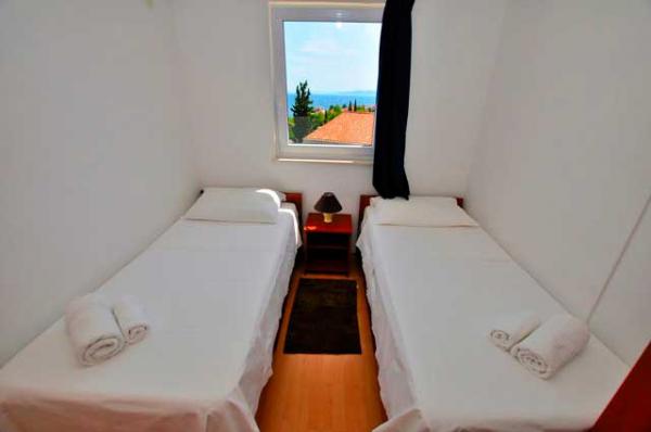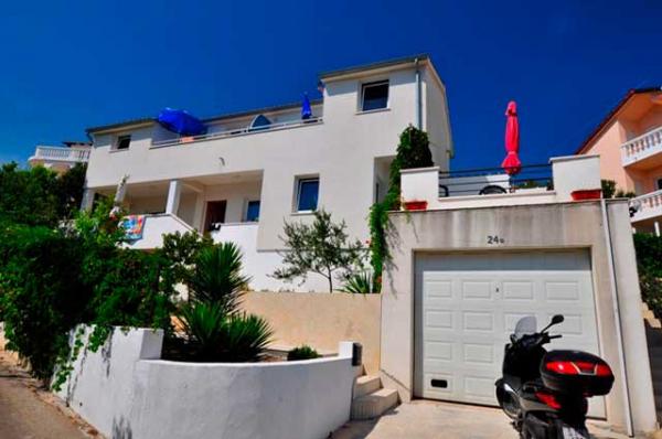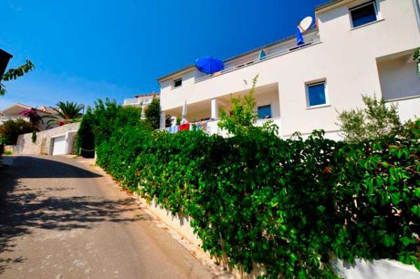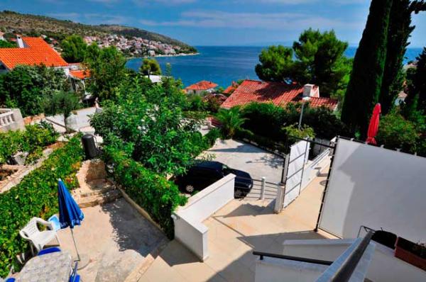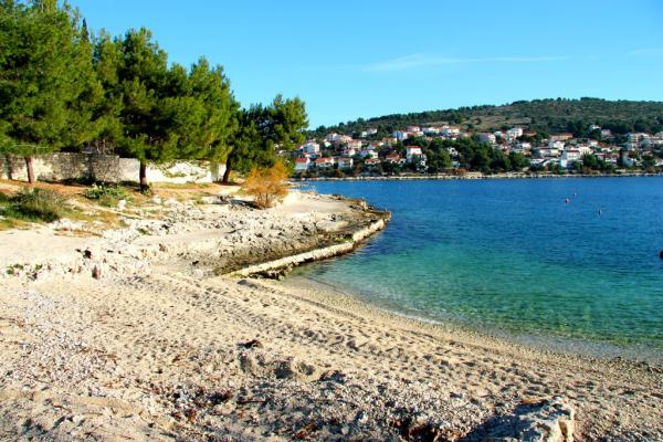 Egy csendes részén a sziget, szép kilátással. Minden apartman internet, SAT-TV, fürdőszoba, teljesen felszerelt konyha, légkondicionáló és parkoló. Strand 70m, központ 300m, Trogir 4 km, Split 30 km.