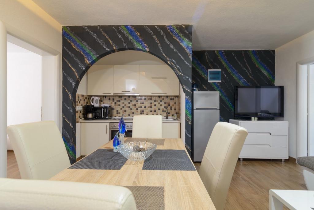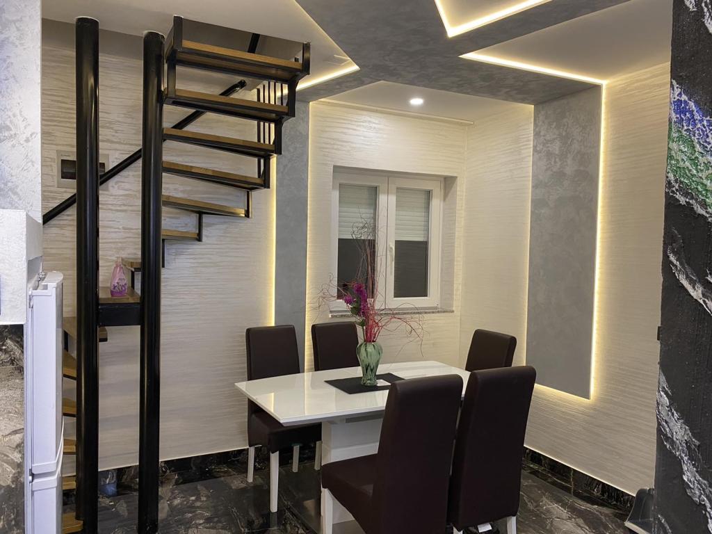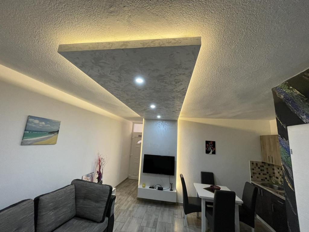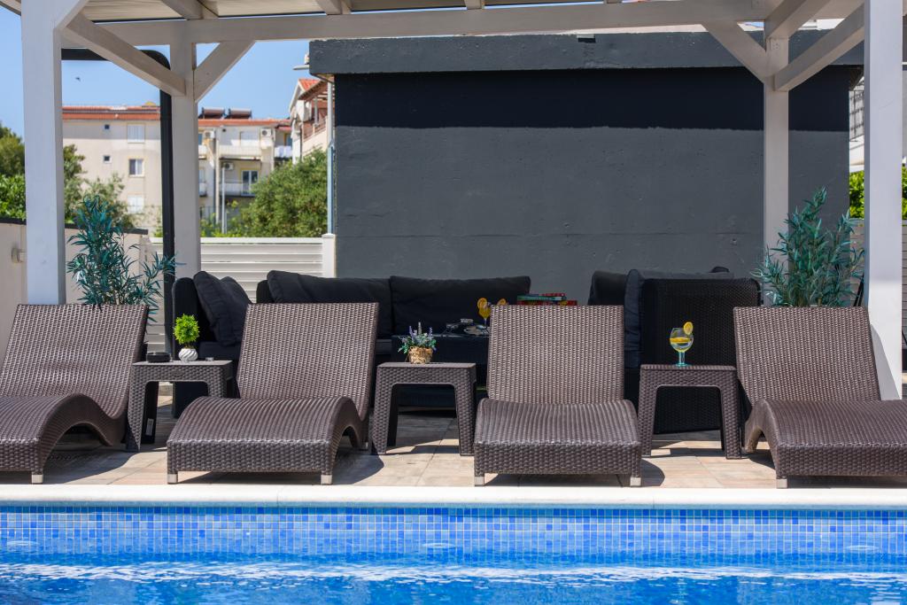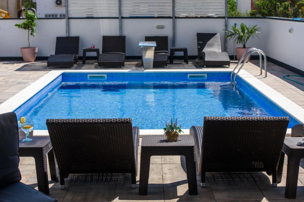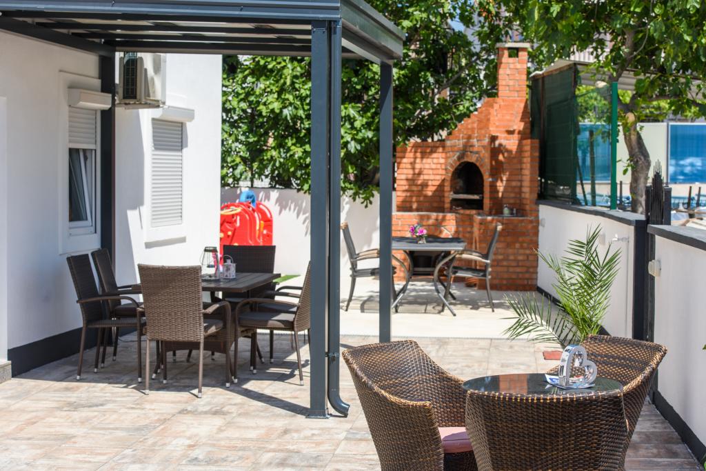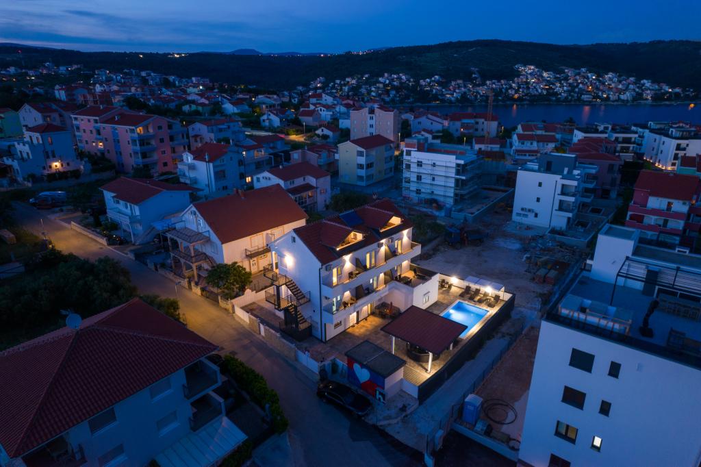 Az apartmanok az újonnan felszerelt Villi ET A épületben találhatók Okrug Gornji városában Ciovo szigetén, amely Trogir történelmi városához kapcsolódik. Teljesen és újonnan berendezett apartmanok Ciovo-sziget gyönyörű részén. Csak 70 méterre a tengertől. Az apartman előtt van egy úszómedence és egy nagy grill. Az apartmanok tartalmaznak mindent, amire szüksége van egy családi nyaraláshoz gyermekekkel vagy barátokkal. A villa 2017-ben épült, és hét apartmanból áll, melyek mind modernek, mind idegenforgalmi célokra alkalmasak. A szálláshely 10 perces sétára fekszik a város központjától, ahol megtalálhatók: mentők, gyógyszertárak, posták, különböző márkák, italok friss élelmiszerekkel, számos étterem és kávézó és a híres Copacabana strand. És csak 3, 5 km-re Trogir központjától meg lehet menni az autójával, buszával vagy hajóval. Szeretettel várjuk kedves vendégeinket, kellemes nyarat.