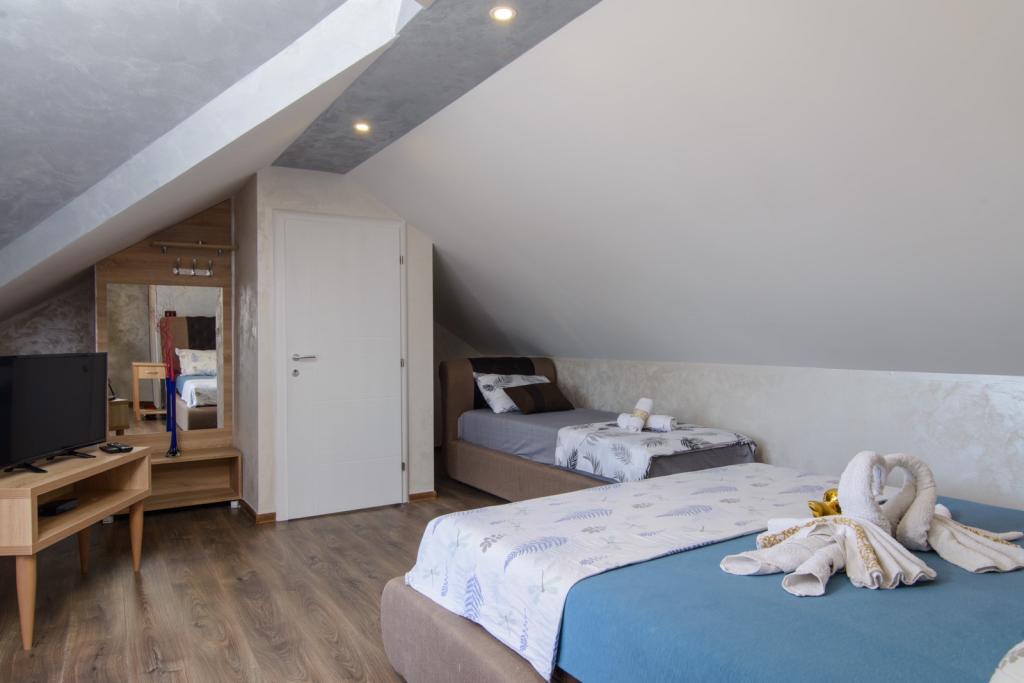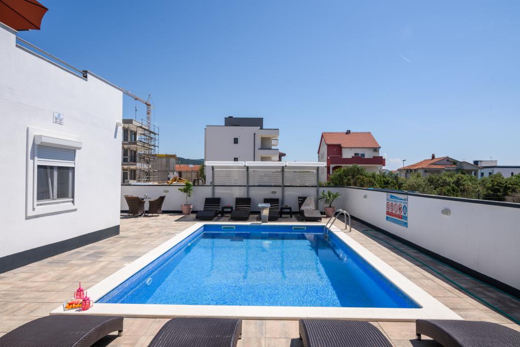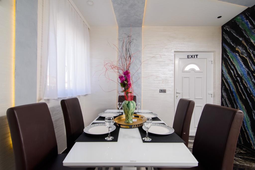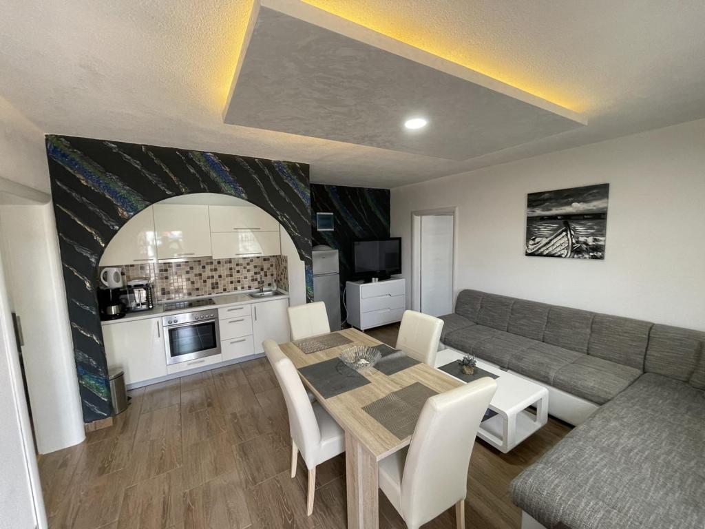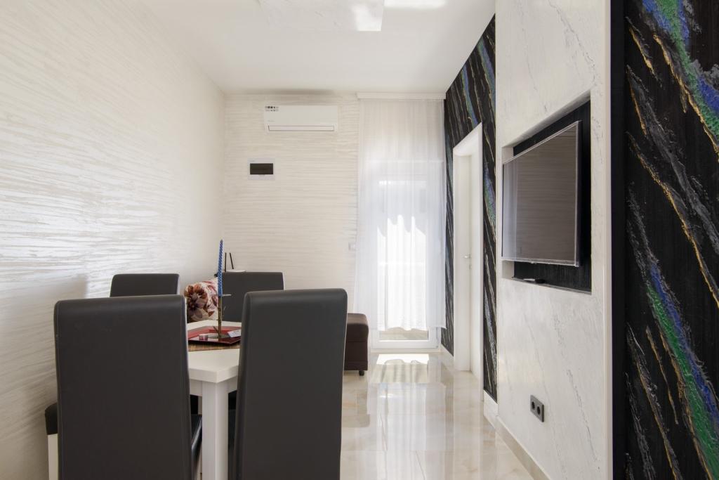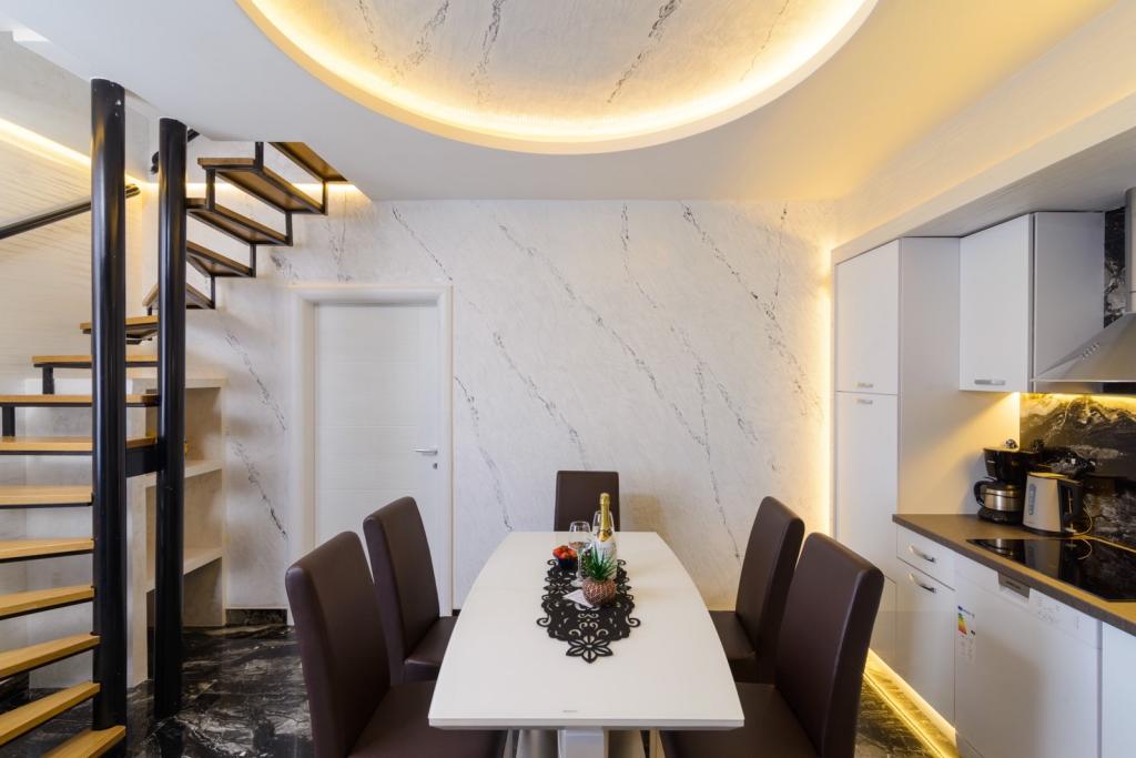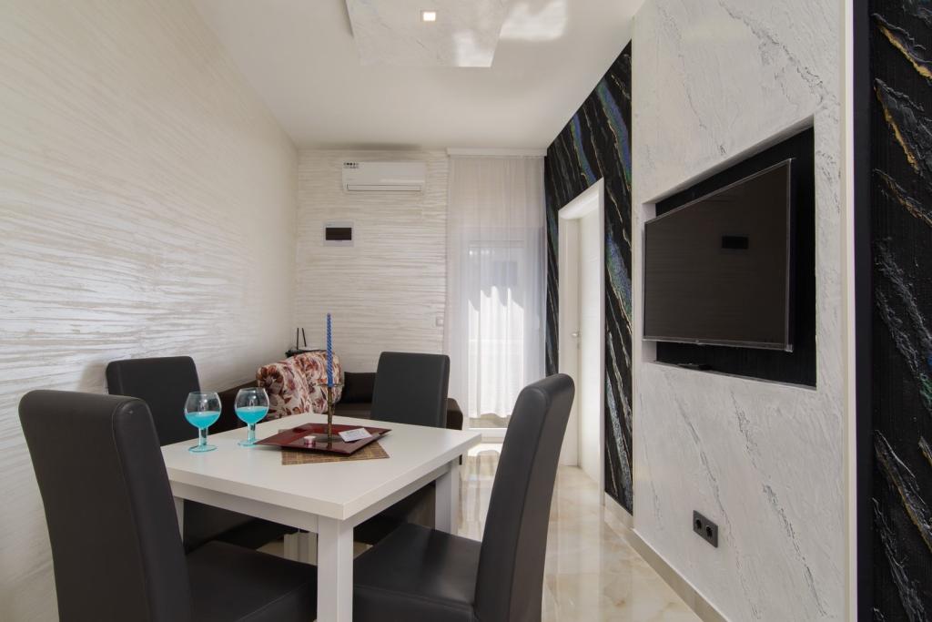 Az apartmanok az újonnan felszerelt Villi ET A épületben találhatók Okrug Gornji városában Ciovo szigetén, amely Trogir történelmi városához kapcsolódik. Teljesen és újonnan berendezett apartmanok Ciovo-sziget gyönyörű részén. Csak 70 méterre a tengertől. Az apartman előtt van egy úszómedence és egy nagy grill. Az apartmanok tartalmaznak mindent, amire szüksége van egy családi nyaraláshoz gyermekekkel vagy barátokkal. A villa 2017-ben épült, és hét apartmanból áll, melyek mind modernek, mind idegenforgalmi célokra alkalmasak. A szálláshely 10 perces sétára fekszik a város központjától, ahol megtalálhatók: mentők, gyógyszertárak, posták, különböző márkák, italok friss élelmiszerekkel, számos étterem és kávézó és a híres Copacabana strand. És csak 3, 5 km-re Trogir központjától meg lehet menni az autójával, buszával vagy hajóval. Szeretettel várjuk kedves vendégeinket, kellemes nyarat.
