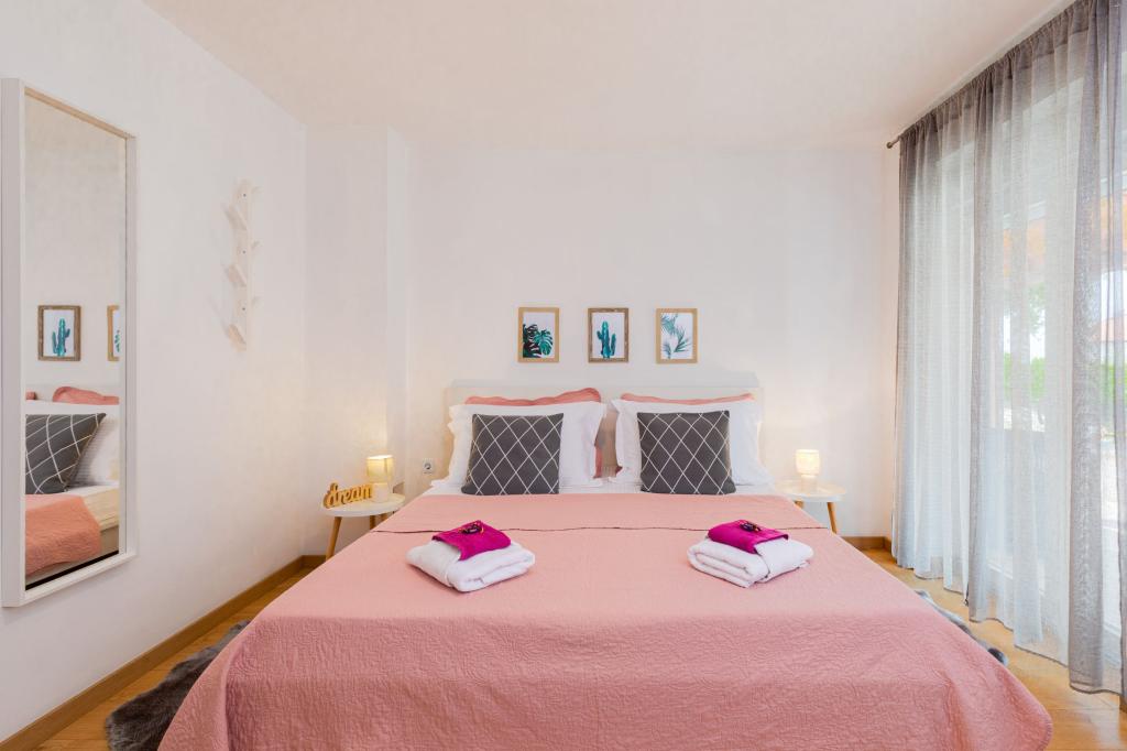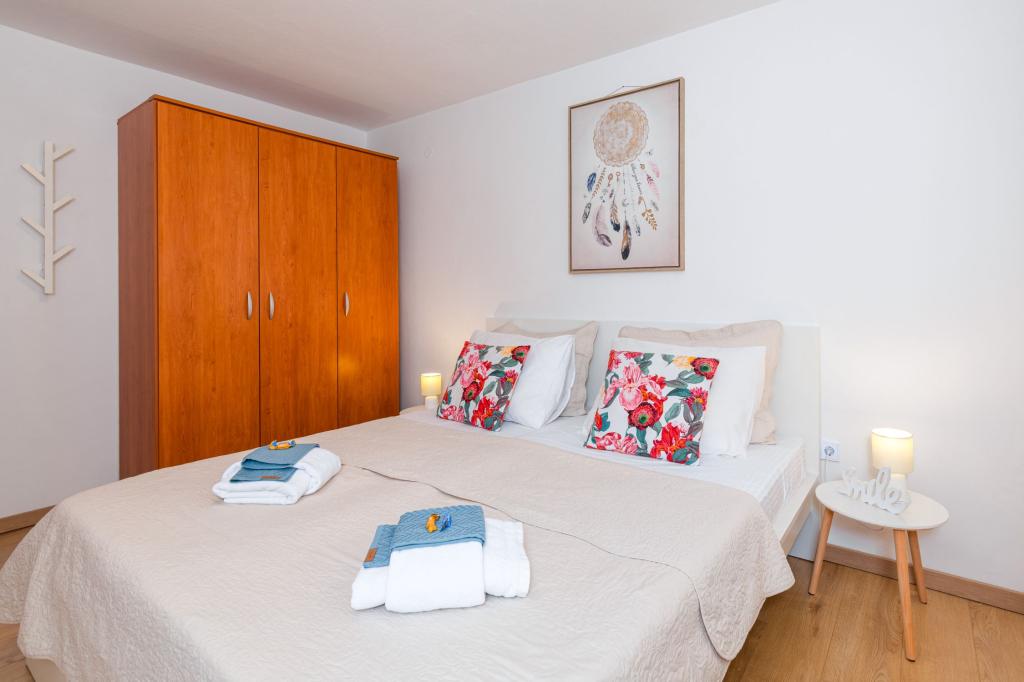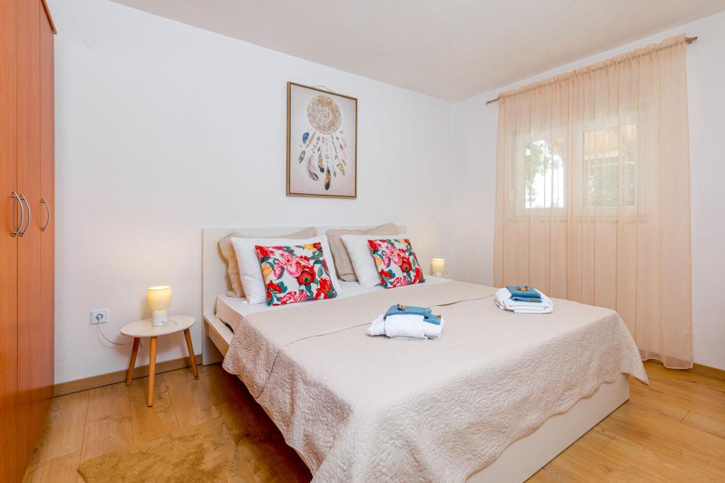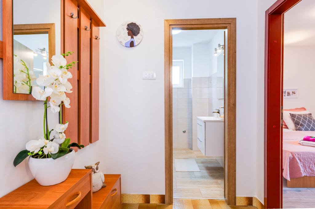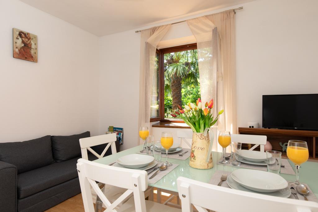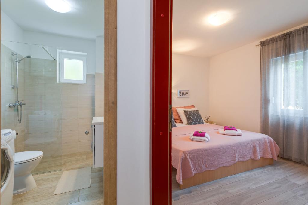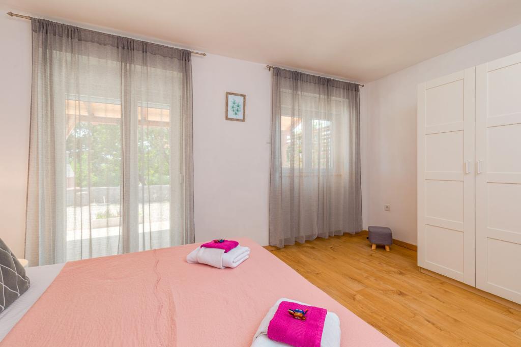 Háromszobás apartman egy családi ház földszintjén Crikvenica csendes részén. A lakáshoz tartozik egy bekerített udvar, két gépkocsi beállási lehetőséggel. A létesítmény teljesen felszerelt mindennel, ami a gondtalan nyaraláshoz kell, Wi-Fi, légkondi, mosógép, hajszárító, kávéfőző, kenyérpirító, kiságy és babaetető. Élvezheti a tágas teraszon, és grillező is rendelkezésre áll. Az apartman mindössze 700 méterre található a városközponttól és a strandtól. Körülbelül 10 perc gyalog a város, de legalább 15 perc a visszaút. Az apartmantól sétatávolságra számos vendéglátó egység található, amelyek a változatos gasztronómiai kínálat mellett gazdag éjszakai életet is kínálnak. A házigazdák minden információért rendelkezésre állnak.
