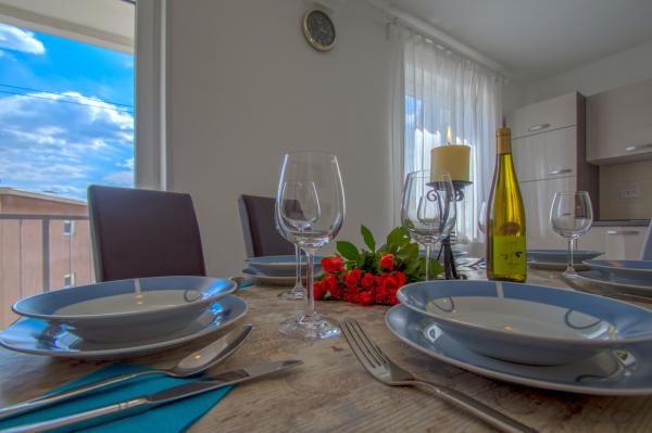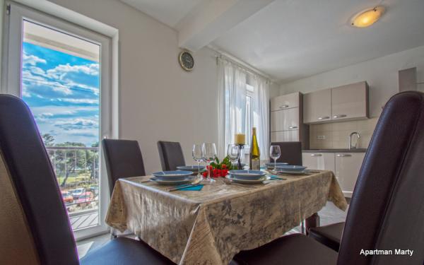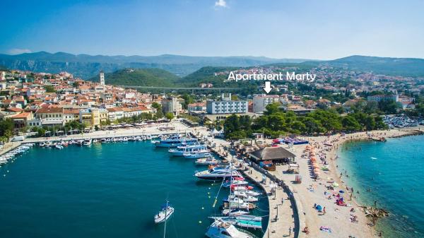 Apartman Marty található központjában Crikvenica! A lakás 76m2, és található egy lakóépület, a 2. emeleten, és a lakások kevesebb, mint 50 található posta, bank, üzletek, buszmegálló, strand. Nagyon szép és kényelmes, és áll egy teljesen felszerelt konyha, étkező, fürdőszoba WC-vel, WC, nappali, két hálószoba és egy erkély. Parkolás nyilvános.