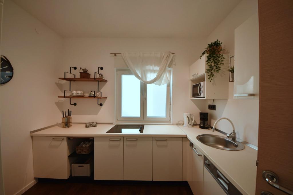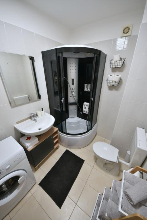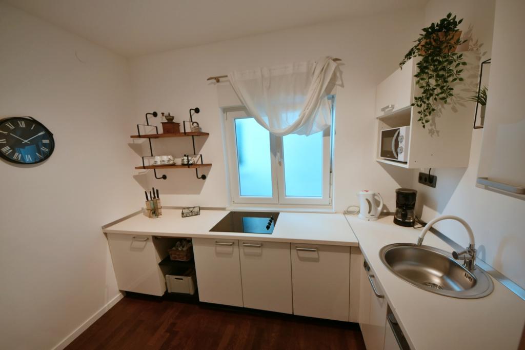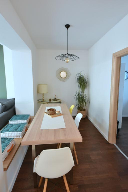 Szépen berendezett és hangulatos lakás. Minden megtalálható benne, amire szükséged lehet - elegendő mosogatógép, mosógép, ruhaszárító, vasaló, hajszárító, elegendő törölköző. Minden a közelben van és könnyen megközelíthető. Üzletek és a piac 5 perc sétára található. Számos kávézó és étterem található közvetlenül a ház alatt. A kisebb és nagyobb kövek keverékével tarkított strand közvetlenül az utca túloldalán található. Homokos, 5 perc sétára található. Ami egyeseknek problémát jelenthet, az a 3. emeletre való felmászás és az alkalmankénti zaj a késői órákban. Összességében nagyon elégedettek voltunk, és visszatérnénk (kétgyermekes család)