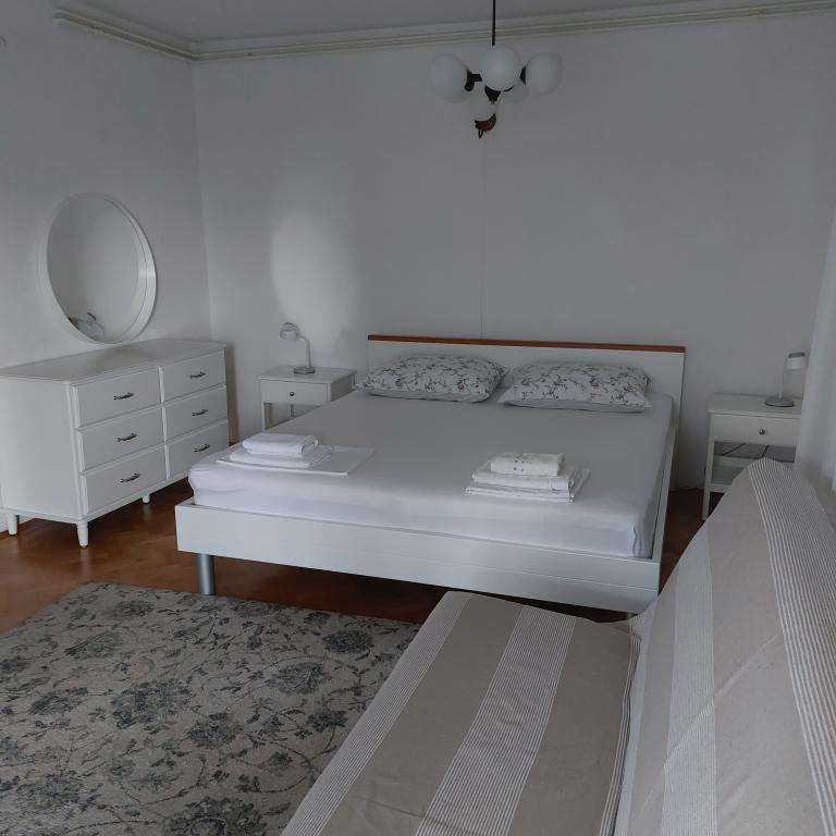 Kevesebb képekFizetés érkezéskor. Foglaláskor 20 százalék előleg fizetendő. Ideális érkezési idő 14.00 és távozás 10.00 óra között, vagy előzetes egyeztetés alapján. A szülőkkel egy ágyban alvó gyermekek után 5 eurót kell fizetni. Egy további gyermekágy ára 15 euró. Az előre egyeztetett számú éjszakát érkezéskor azonnal ki kell fizetni. E-mail címem: davorka.kuzmic@gmail.com