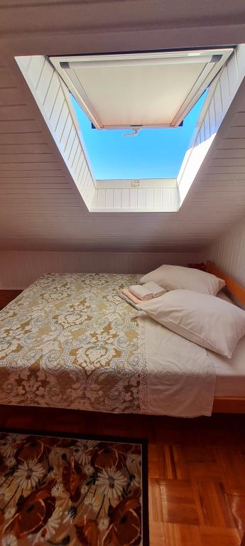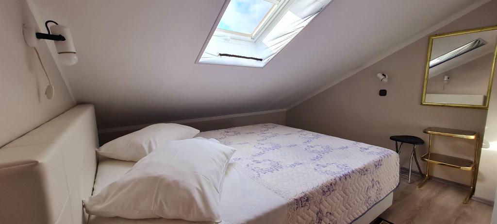 Az 1. apartman a tetőtérben található, és 2 hálószoba franciaággyal, egy zuhanyzós fürdőszoba, egy nappali 2 kanapéval, egy konyha és egy étkező, egy kisebb, tengerre néző erkély, egy nagyobb. tetőterasz és külön bejárat. A 2. apartman a földszinten található, és 2 hálószoba franciaággyal (1 pótágy minden szobában), fürdőszoba zuhanyzóval, konyha, tágas, zárt terasz étkezőasztallal, kisebb kerti terasz, nagy terasz, kilátással a tengerre és egy külön bejárat. Szoba franciaággyal, saját, zuhanyzós fürdőszobával, kerti terasszal ülőhellyel és külön bejárattal.
