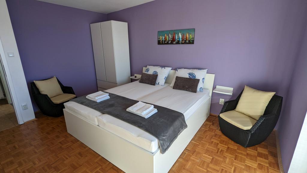 Az Apartments Kety a gyönyörű Crikvenica városában található, 250 méterre a homokos strandtól és 250 méterre a kavicsos strandtól. 3 apartman közül választhat, amelyek 2-5 fő elszállásolására alkalmasak, és házi kedvenceket is szívesen látunk. Minden apartmanhoz tengerre néző erkély, zuhanyzós fürdőszoba, konyha és étkező tartozik. Minden hálószoba ingyenes légkondicionálóval és az apartman minden részében ingyenes Wi-Fi-vel rendelkezik. Minden apartman központi fűtéses, így nagyon kényelmes a téli, tavaszi és őszi napokon. Minden konyhában tűzhely, mikrohullámú sütő, hűtőszekrény fagyasztóval, mosogató, edények, edények, edények és evőeszközök találhatók. A parkolás a helyszínen ingyenes, de korlátozott. A nyilvános parkoló az összes közeli utcában ingyenes. Az apartmanok egy magánház első emeletén találhatók, így kerekesszékkel nem megközelíthetők. Egy kis üzlet 300 méterre, a nagyobb üzletek, köztük a Lidl pedig 600 méterre találhatók. A Thalassotherapia gyógyfürdő 400 méterre található.