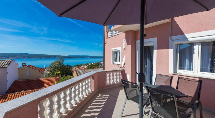 Nagyon szép szálláshely Crikvenica csendes részén, biztonságos parkolással az épületen belül. Két apartman található ugyanazon az emeleten, így 8 fő elszállásolására van lehetőség ugyanazon az emeleten, kb. (4,5 és 2,5 fő). Az apartman ára tartalmazza az idegenforgalmi adót, a légkondicionálót és a Wi-Fi-t. Minden apartmanhoz saját terasz tartozik tengerre néző kilátással és grillezési lehetőséggel. Háziállatok napi 10 euró felár ellenében elszállásolhatók.