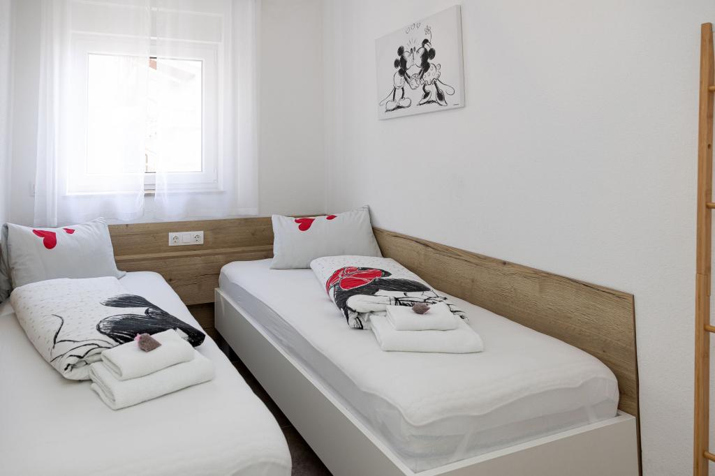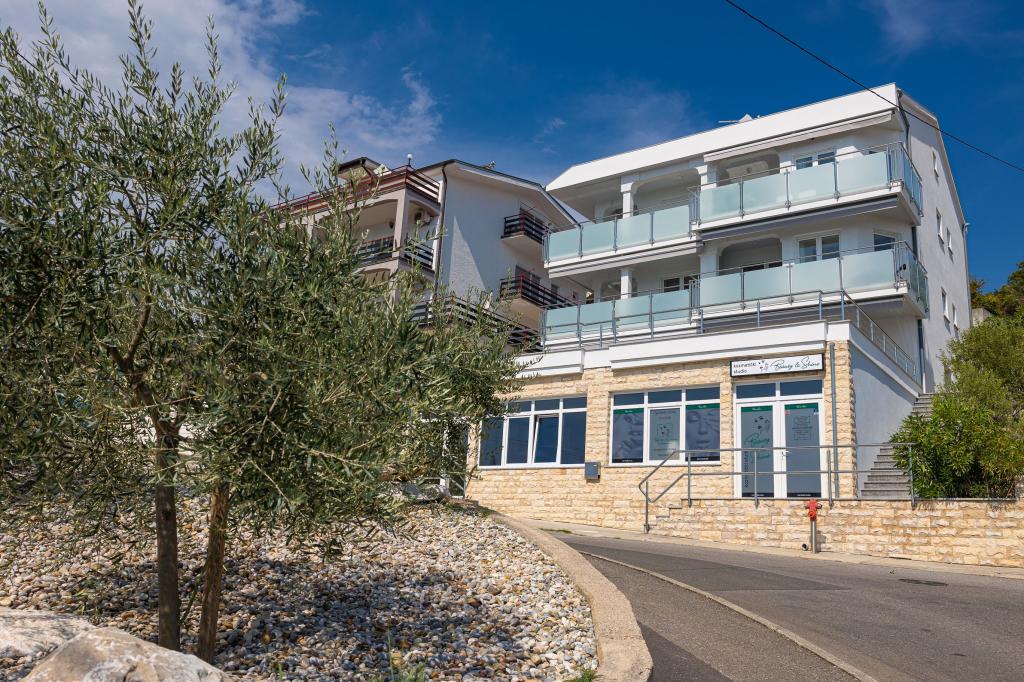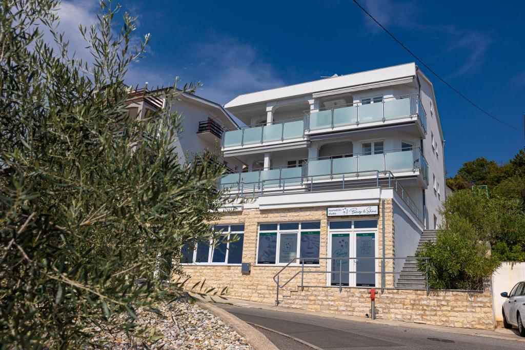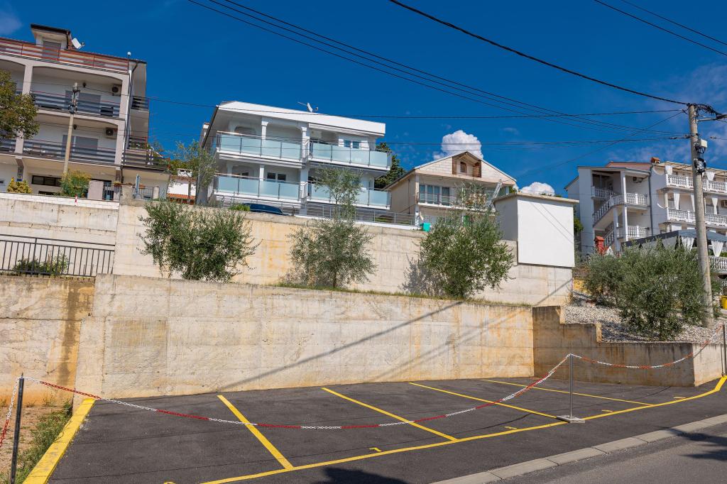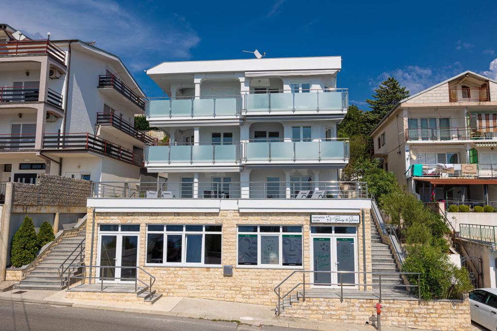 Ez a modern apartmanház tökéletes választás egy tengerparti nyaraláshoz és élethez. A város egy csendes részén található, magánéletet és nyugalmat kínál, miközben minden szükséges szolgáltatáshoz közel van. Az apartmanok modernek, a legmodernebb technológiával és bútorokkal felszereltek, a nagy ablakok pedig gyönyörű kilátást nyújtanak a tengerre. A belső tér minimalista, a kényelemre és a funkcionalitásra helyezve a hangsúlyt, ideális környezetet biztosítva a kikapcsolódáshoz. A ház távol a zajtól és a tömegtől található, mégis gyorsan megközelíthető a városközpont. A ház mögött egy grillezőhely található, amely tökéletes a nyugodt szabadtéri összejövetelekhez. A ház mellett ingyenes parkolóhelyek állnak rendelkezésre, így a parkolás stresszmentes. Ez a ház a modern élet, a magánélet és a természeti környezet tökéletes keverékét kínálja, tengerre néző kilátással és minden olyan szolgáltatással, amire minden látogató vágyhat.