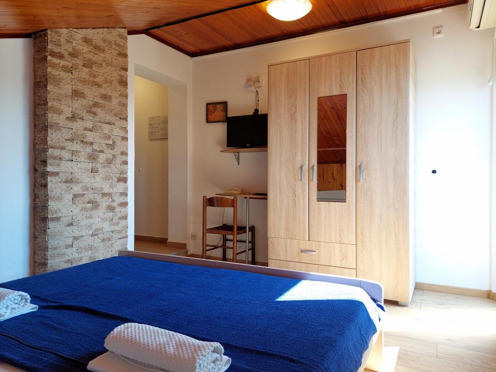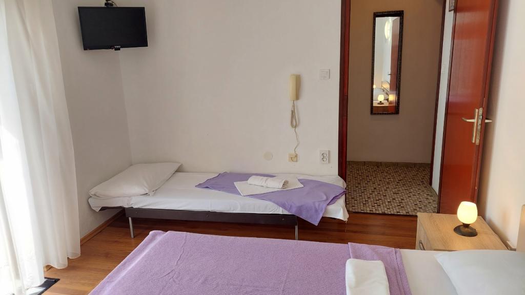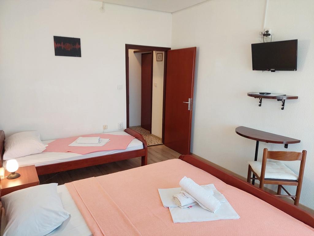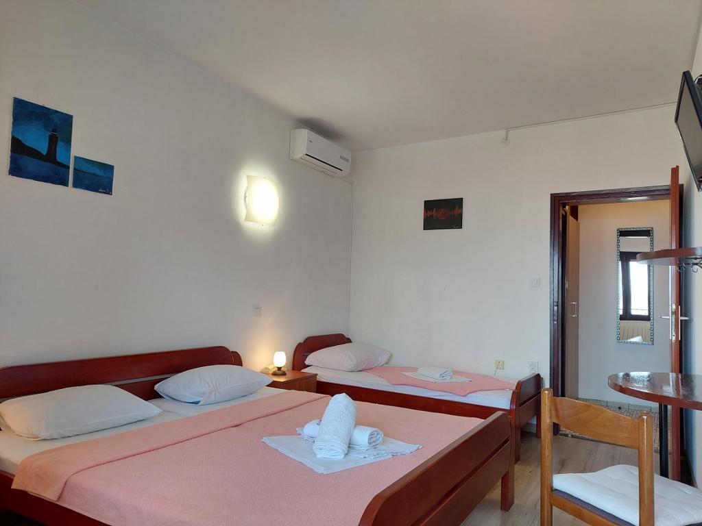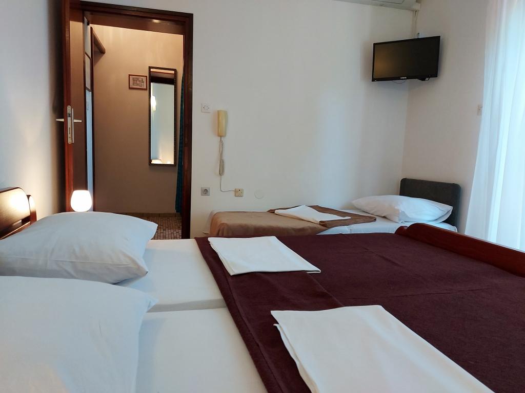A több mint 40 éves családi hagyománnyal rendelkező PANSION KLAUDIJA 14 teljesen felszerelt szobát kínál: zuhanyzó, WC, erkély (12 szoba tengerre néző), központi fűtés, telefon, SAT/TV és légkondicionáló. Egyéb szolgáltatások: - saját parkoló, - nappali SAT/TV-vel, - széf, - étterem bárral és kerti terasszal, - gyönyörű kert szökőkúttal. - ingyenes internet (ingyenes WIFI) Vendégeink, valamint minden más látogató rendelkezésére áll egy 80 férőhelyes étterem nyitott terasszal. Kellemes környezetben, barátságos személyzettel élvezhetik a helyi és nemzetközi konyha számos specialitását.