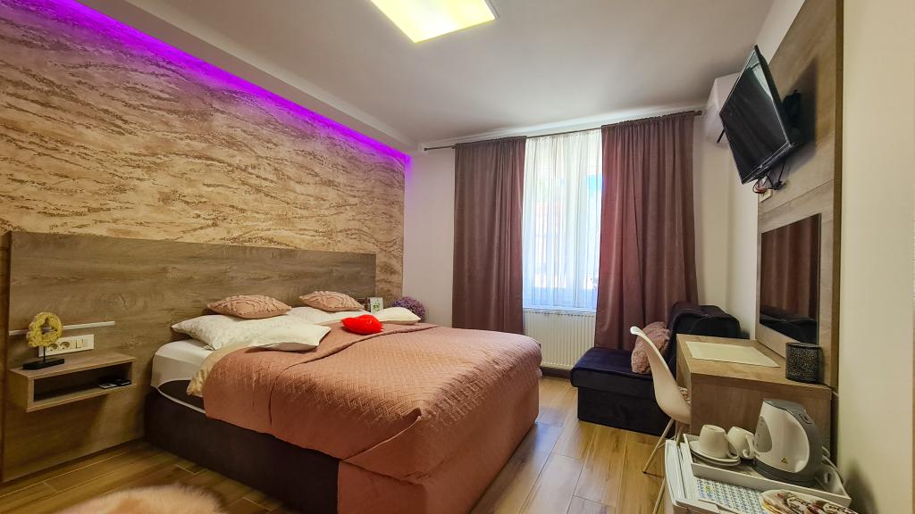 A szobák superior szállodai ágyakkal, nívós matracokkal, LCD TV-vel, ingyenes Wi-Fi-vel felszereltek, saját fürdőszobájuk a legmodernebb szabványok szerint van berendezve. Hasonlóképpen, minden helyiségben speciális LED-es világítás gondoskodik, hogy kellemes légkört teremtsen, amely különleges hangulatot teremt a nálunk töltött idő alatt. A létesítmény mellett parkolók vannak, amelyeket nem kell külön lefoglalni. A szobákban instant kávé, csokoládé, cukorka formájában apró figyelemfelkeltéssel fogadják Önt, illetve ha kívánja, igénybe veheti a létesítményen belül található wellness és gyógyfürdő oázisunkat is.