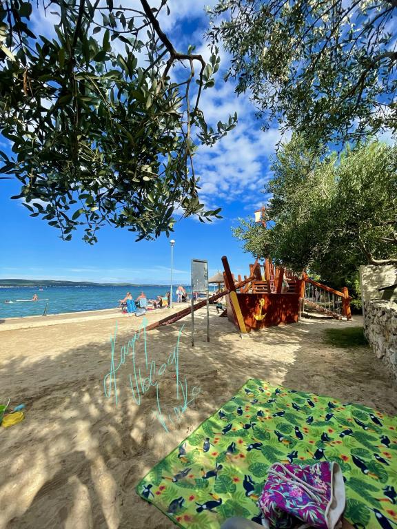 Apartman Dobropoljanában, mindössze 150 méterre a homokos kavicsos strandtól, amely alkalmas gyermekek és idősek számára. Az apartmanban három hálószoba, nagy konyha, erkély és egy fürdőszoba található. Internet hozzáférést és légkondicionálást biztosítunk. A ház mögött van egy szabadon használható kémény. Dobropoljanában élvezheti a gyönyörű hosszú strandot, ahol csúszdák, facsónakok a homokozóban játszhatnak és hintázhatnak, eltöltheti az időt a tengerparti kávézókban, vagy ellátogathat Dobropoljane régi falujába. A házigazdák mindenben az Ön rendelkezésére állnak, amire szüksége van. Az apartmantól mindössze 10 percnyi sétára lévő régi falun kívül Pasman sziget legmagasabb csúcsára is vezet egy út, ahonnan lenyűgöző kilátás nyílik a zadari szigetcsoport szigeteire. Pašman szigete gazdag kerékpár- és túraútvonalakban, és Dobropoljana ideális kiindulópont ezeknek az utaknak a felfedezéséhez. Dobropoljana kiváló kiindulópont Pašman és Ugljan különböző látnivalóihoz