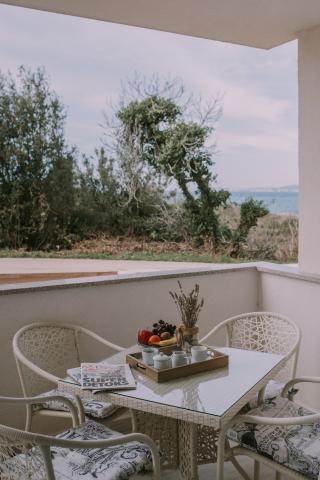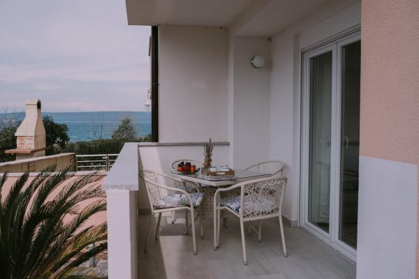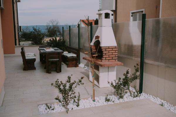 Új, modern berendezésű lakás, perc sétára a strandtól, földszinti erkéllyel és nagy terasszal, kilátással. Ideális fiatalabb gyermekek és családok számára, akik békét és csendet keresnek cigánygömbökkel és hullámok összegével!