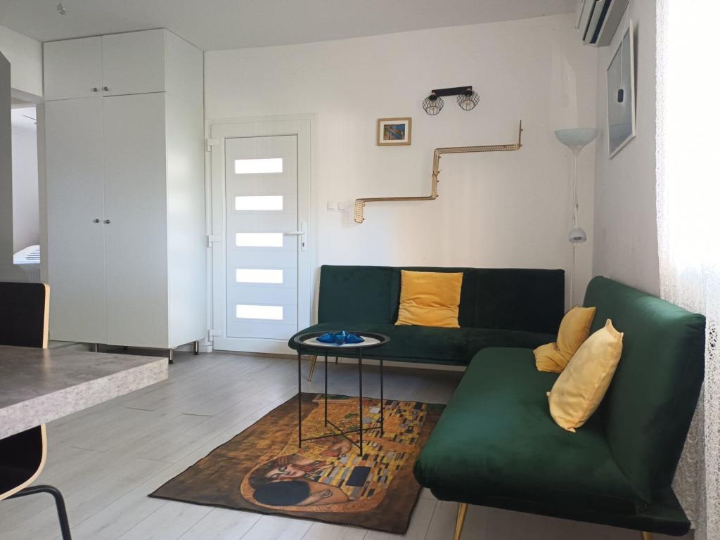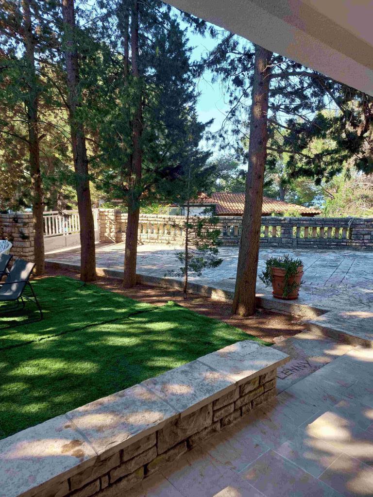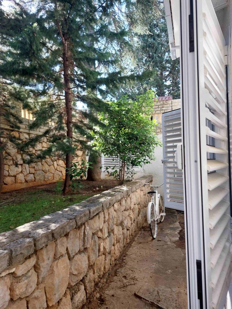 Élvezze teljesen felújított apartmanunkat a tiszta tengerre néző terasz árnyékában! Az apartman a villa földszintjén található, és egy nagy, árnyas udvar veszi körül az első sorban a tenger felé. Töltse a délutáni meleget illatos kertünkben hideg koktélokat kortyolgatva, várva a legszebb naplementét! Nálunk minden karnyújtásnyira van - egy ital a közeli tengerparti bárban, vacsora a szomszédos pizzériában, mindenféle tevékenység a tengerparton, könyvolvasás a tenger melletti öreg fenyőfák árnyékában, játszótér az árnyékban, kivilágított sétány a tenger mellett. Ne aggódjon a parkolás miatt – az udvarban biztosított. Mivel nagy állatbarátok vagyunk, szeretettel várjuk kedvenceiket!