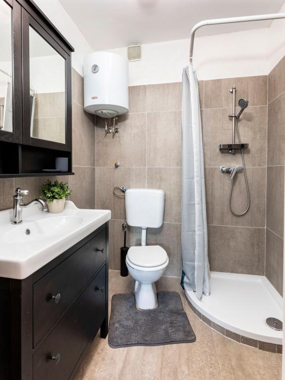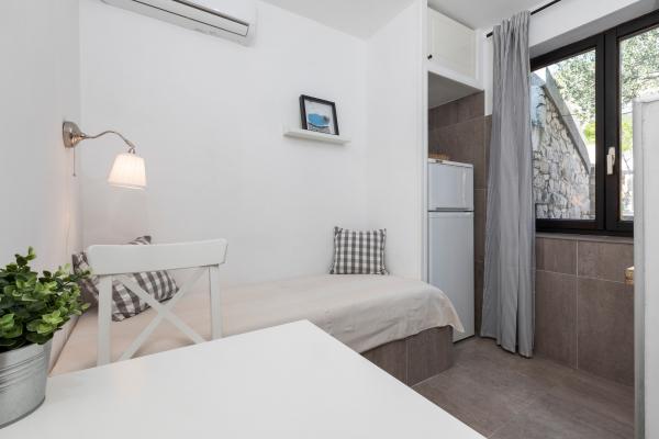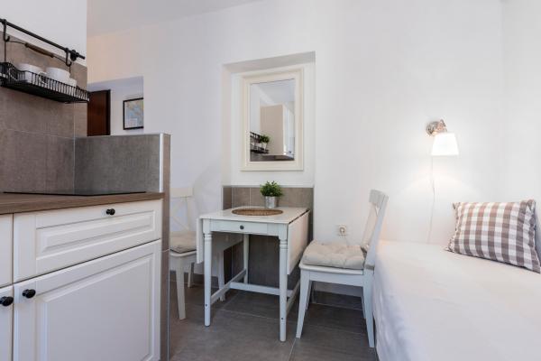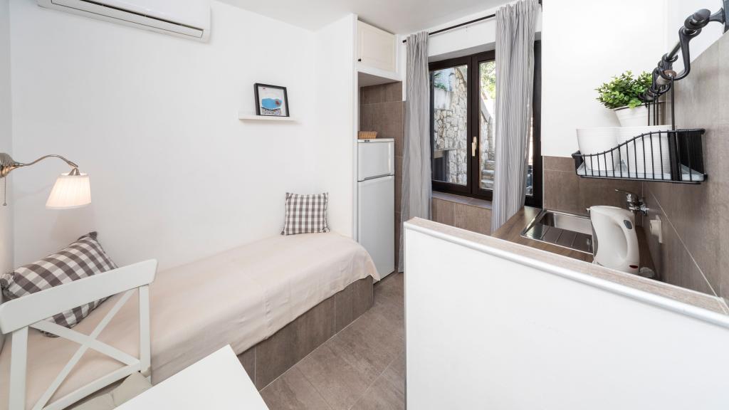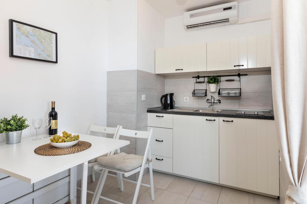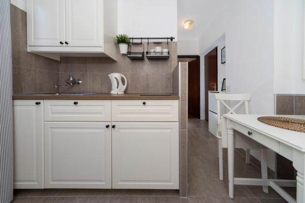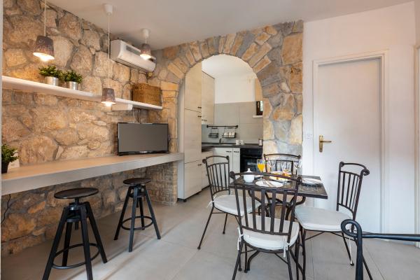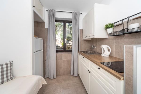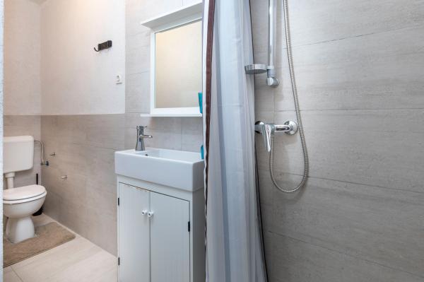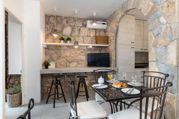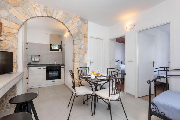 Maga a ház fantasztikus. Kő körül olajbogyó, babér, füge és virágok. Van egy sarok grillezővel, miközben még csirkék is megbújnak a ház hátsó részében. Az apartmanból csodálatos kilátás nyílik, és mindent megtalál, ami egy kellemes nyaraláshoz kell. Barátságos házigazda. A strandra a leggyorsabban lépcsőn lehet eljutni. Két-három perc, és már a parton vagy. Kicsit felfelé van. A parton mindig van egy sarok árnyékban. A közelben egy pékség és egy kis piac található. Nagyon jól éreztük magunkat a nyaraláson.