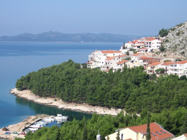 Egy csendes hely egy kis faluban Vodicétől 20 km-re megfelelt az elvárásainknak. A szállás tágas volt, a szobák tiszták, a házigazdák nagyon kedvesek. Parkolás a garázsban. A faluban több üzlet található élelmiszerek és általános szükségletek vásárlására. A teraszról közvetlen kilátás nyílt a tengerre és a környező szigetekre.