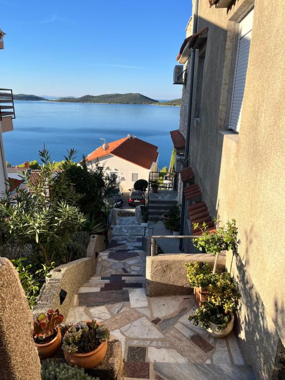 Teljesen és korszerűen felszerelt apartmanok csendes környéken, gyönyörű kilátással a tengerre, amely egészen Kornatiig nyúlik. Az apartmanok a második sorban találhatók a tenger felé, így csak lépcsőn kell lemenni a tengerhez, ahol kövezett strandok, kristálytiszta tenger és gyönyörű árnyék és fenyőfák illata van. A közvetlen szomszédságban pedig egy kavicsos strand található, amely a gyerekek igazi paradicsoma. Minden apartmanunkhoz tartozik őrzött parkoló és a vendégek használhatják a közös grillezőt is. A strandon éttermek és kávézók 5 percre találhatók. , a legközelebbi üzlet pedig 10 perces sétával elérhető.