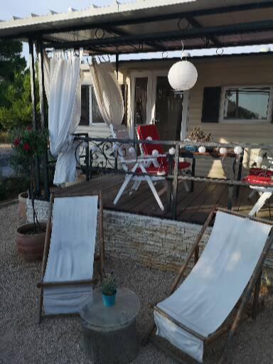 Légkondicionált mobilház 30 m-re a tengertől, 2 hálószobával, konyhával, 2 fürdőszobával, nappalival, terasszal, parkolóval, szabadtéri zuhanyzóval, grillezővel, nyugágyakkal és saját parkolóval. Háziállat megengedett.