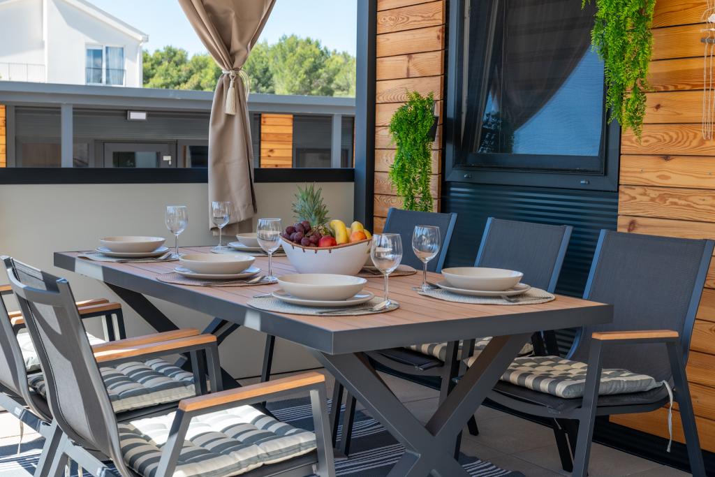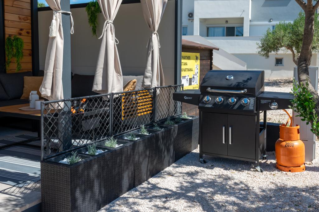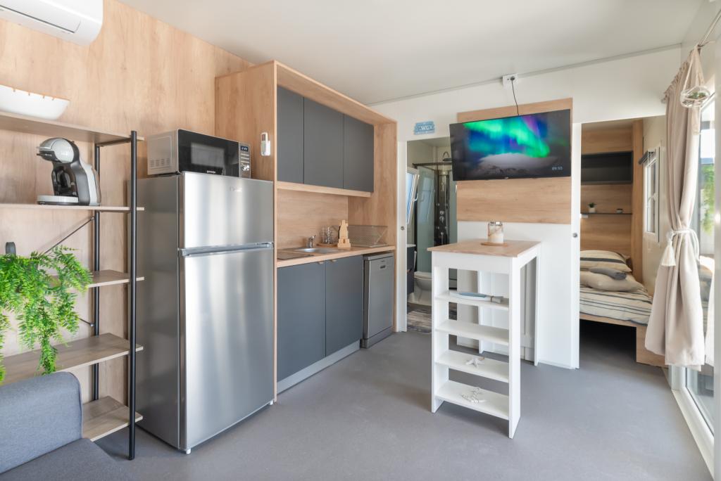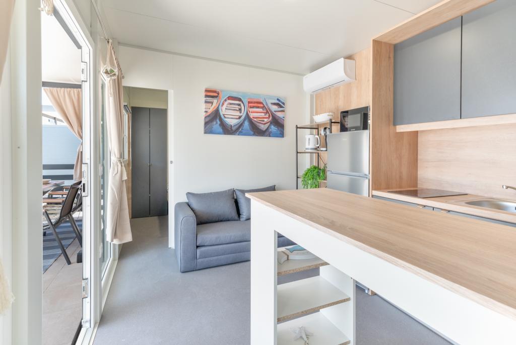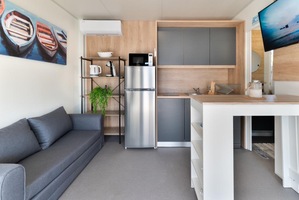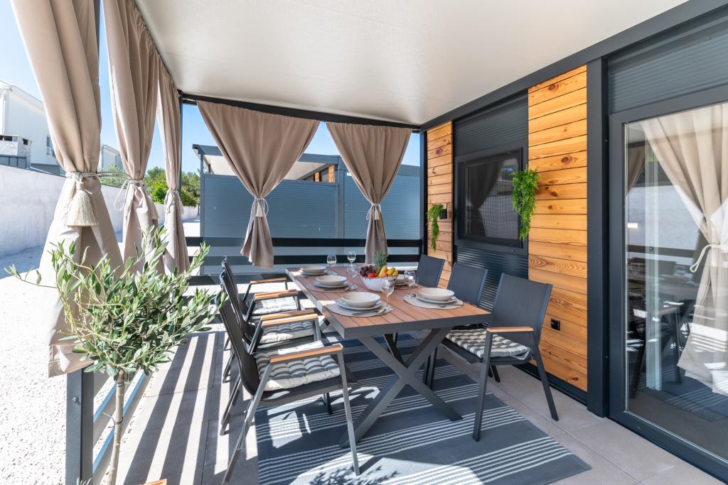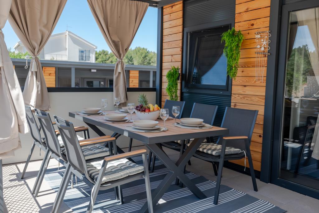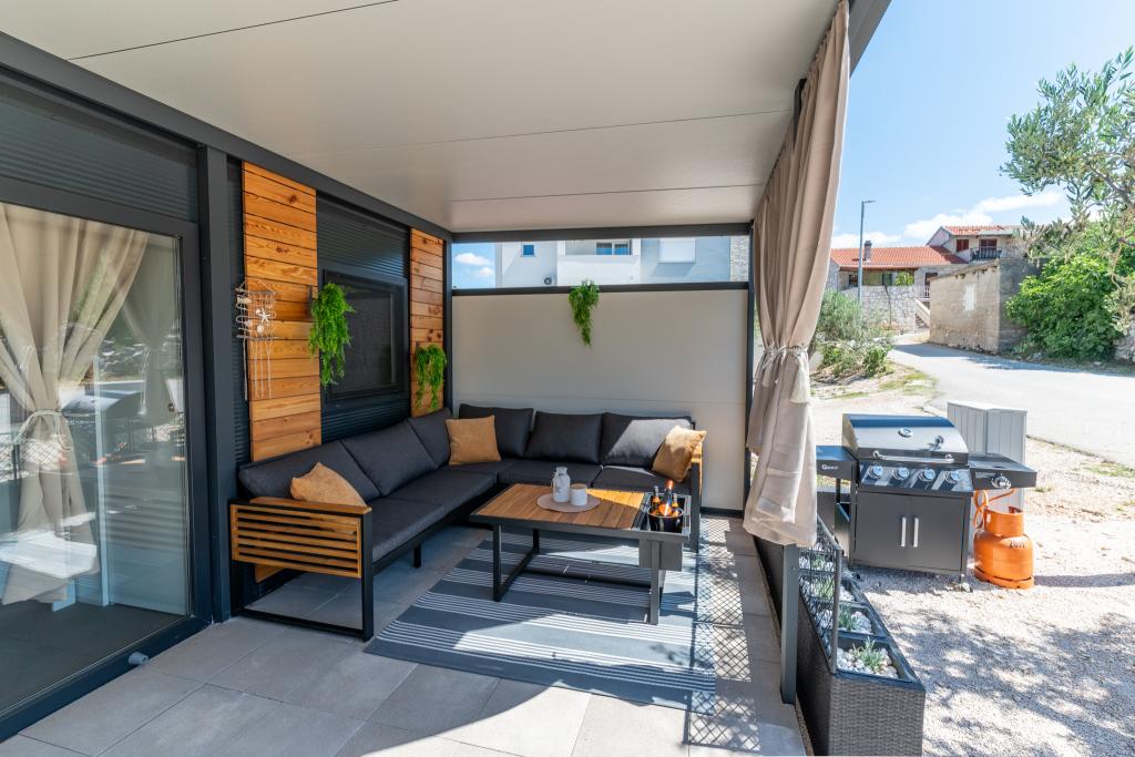 Fedezze fel a tökéletes tengerparti nyaralást bájos mobilházainkban, mindössze 70 méterre a Porat strandtól, a békés Drage faluban! Két házat kínálunk, mindegyikben akár 4 felnőtt és 1 gyermek is elfér. A házak két hálószobával rendelkeznek. Az egyikben egy 160x200-as franciaágy, a másikban pedig egy 140x200-as franciaágy található. Ezenkívül egy kanapéágyon egy legfeljebb 5 éves gyermek is elfér. Minden szoba kényelmes ágyakkal és ágyneművel van felszerelve, biztosítva a megérdemelt pihenést. A nappali modern bútorokkal és TV-vel van felszerelve, amely tökéletes az esti pihenéshez. A konyha teljesen felszerelt minden szükséges készülékkel, beleértve a hűtőszekrényt, tűzhelyet, kávéfőzőt, vízforralót és mikrohullámú sütőt. Élvezze reggeli kávéját vagy esti italát a tágas, 24 m²-es teraszon! Kérjük, minden kérdését kizárólag a kapcsolatfelvételi űrlapon keresztül küldje el!