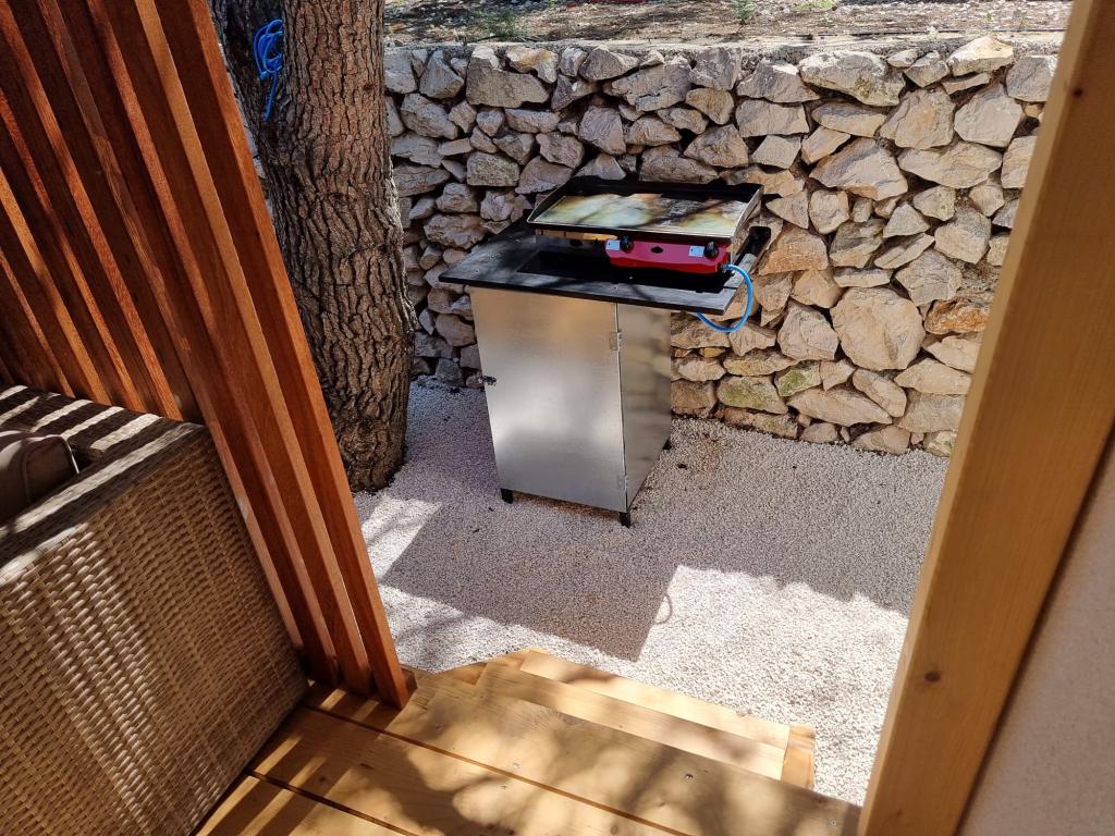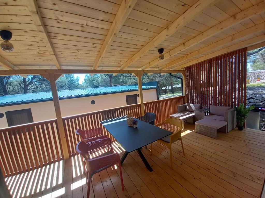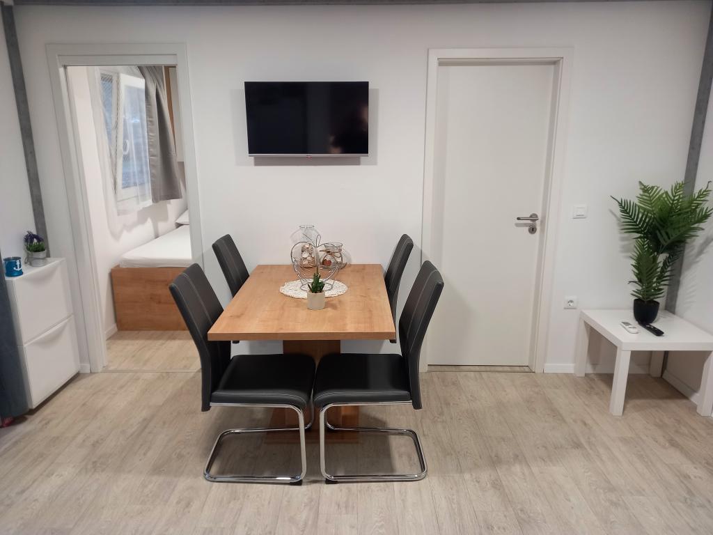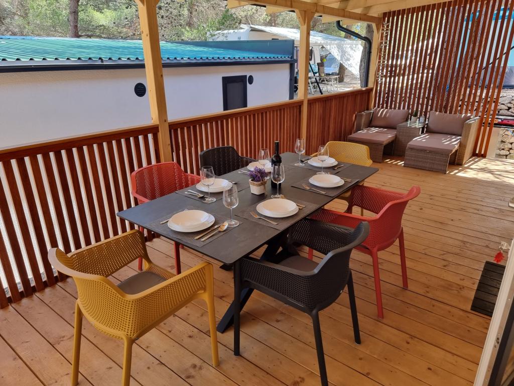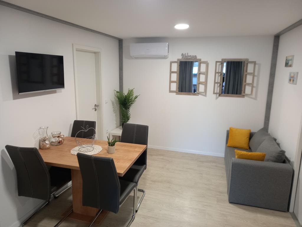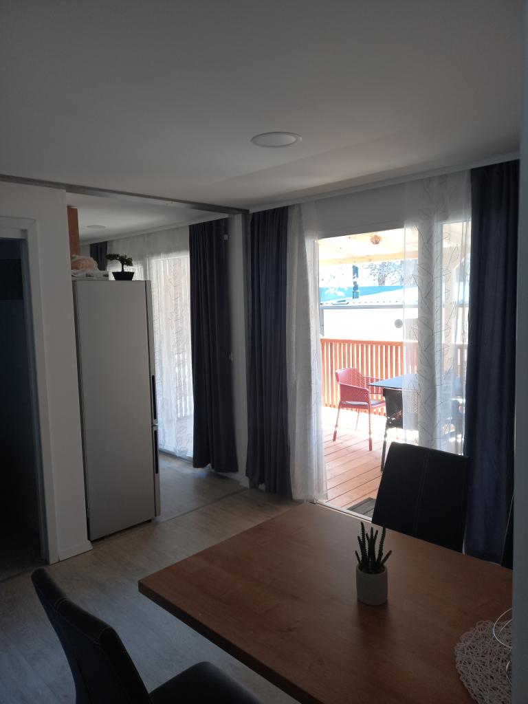 Prémium mobilház LANA - az "Oaza Mira" autótáborban található, Drage városában. Néhány lépésre található a Porat strandtól és 100 méterre az Oaza Mira tábor privát strandjától. Teljesen felszerelt konyha, nappali kanapéval és TV-vel, wifi, légkondicionálás, hűtőszekrény, mosogatógép, mikrohullámú sütő és vízforraló, valamint saját fürdőszoba hajszárítóval és zuhanyzóval. Nagy, felszerelt kültéri terasszal rendelkezik grillezővel. A közelben szaniterek (mosógépekkel), üzlet, kávézó-bár (a strandon), strandröplabda pályák, foci, minigolf, villanycsatlakozás, játszótér (a strandon és a táboron belül), étterem és szabadtéri fedett medence tengervízzel.