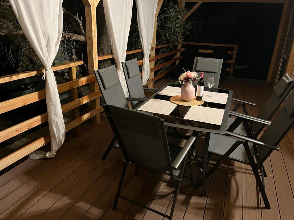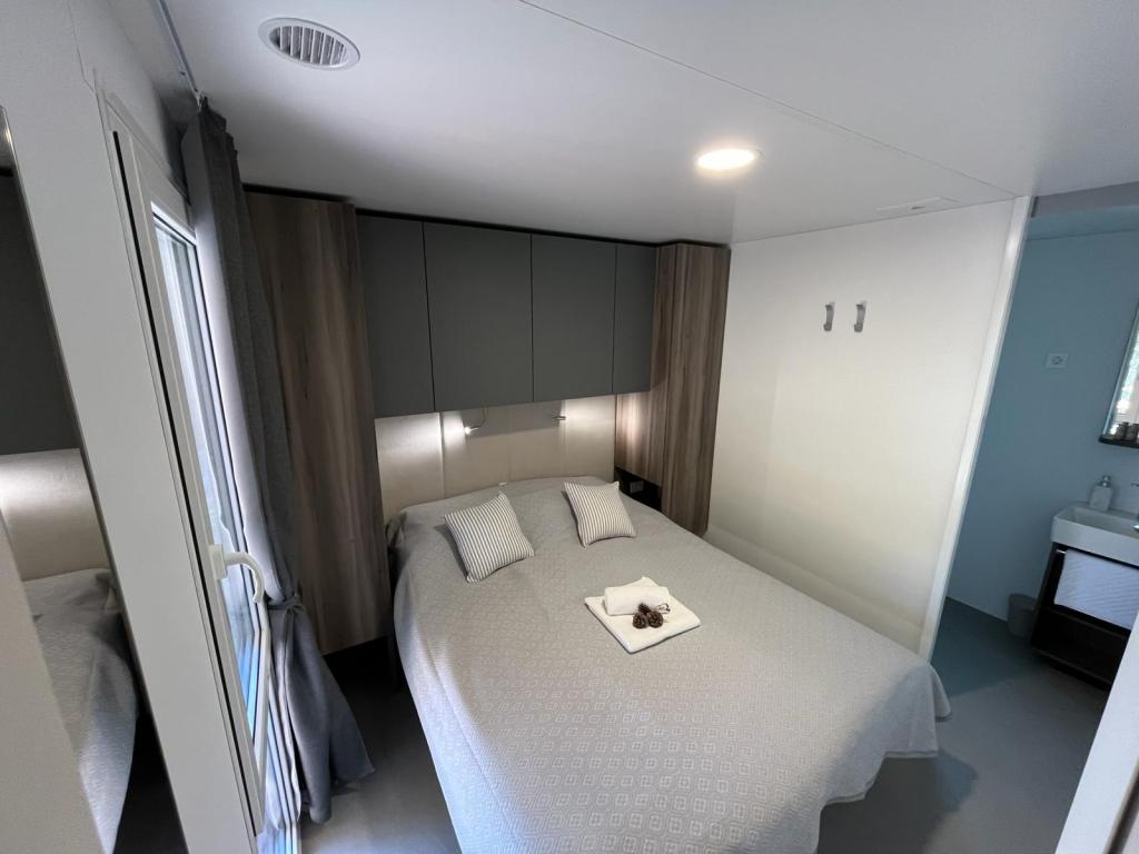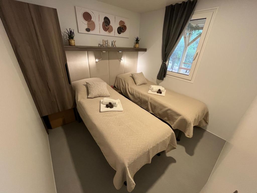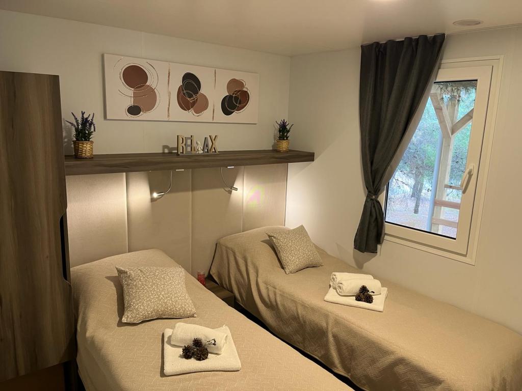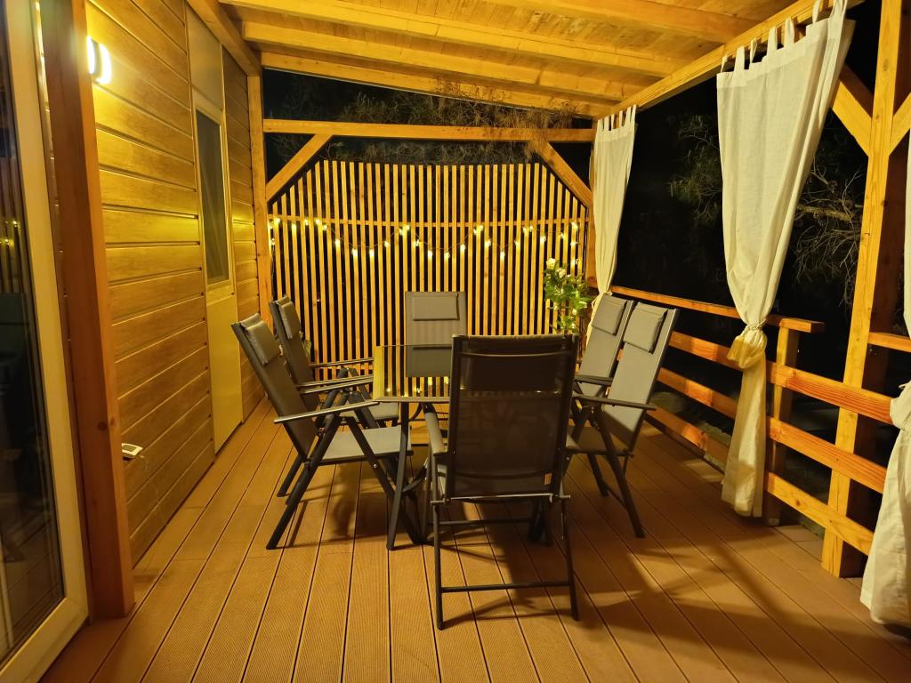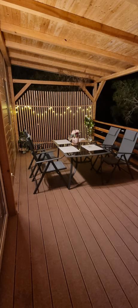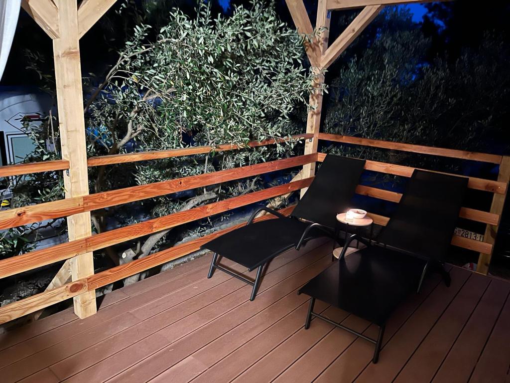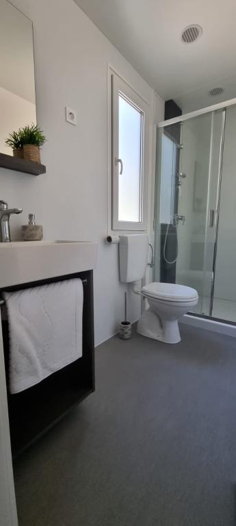 35 m2-es, új, teljesen felszerelt mobilház 24 m2-es terasszal az Oaza Mira kempingben található. A kemping 4****-os kategóriába tartozik. A kempingben található egy fürdőszoba mosógép használati lehetőséggel, teniszpályák, játszótér, étterem, kávézók, úszómedence. A kemping közelében számos kék zászlós strand, kikötő és sétányok is találhatók. Távolság a kempingtől: - Pakoštane 4 km - Biograd na Moru - Vrana-tó 3 km - Zadar 39 km - Krka Nemzeti Park 36 km - Šibenik 24 km - Vodice 20 km A ház a következőket kínálja: - egy szoba egy 160x200 cm-es franciaággyal - egy szoba két egyszemélyes ággyal (90x200 cm) - nappali kihúzható kanapéval 2 fő részére - 2 fürdőszoba zuhanyzóval és WC-vel - 6 fő részére felszerelt konyha - hűtőszekrény fagyasztóval - vízforraló - 4 gázrózsás üvegkerámia főzőlap - mosogatógép - Wi-Fi, Smart TV + Netflix - étkezőasztal + 4 szék - 2 nyugágy, asztal és 6 szék - 2 parkolóhely a mobilház előtt, - ágynemű és törölközők