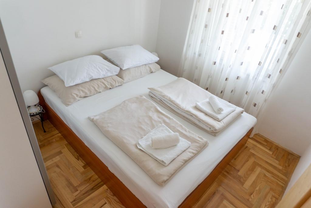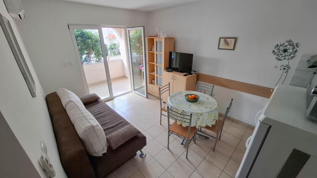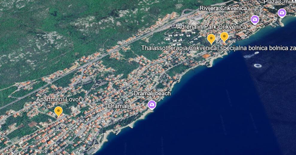 Lovor Apartman (31m²), társasház földszintjén, csendes helyen Dramaljban. 450m a tenger, Thalassotherapia, Adrenalin Park és túraútvonalak közelében. Ideális 2-3 felnőtt vagy család részére. Hálószoba (160x200), fürdő, terasz és felszerelt konyha (hűtő, tűzhely, mikro, vízforraló, kávéfőző, pirító, edények) nappalival (TV, kanapé 75x200/150x200). Klíma, ingyenes Wi-Fi és parkoló az udvarban.