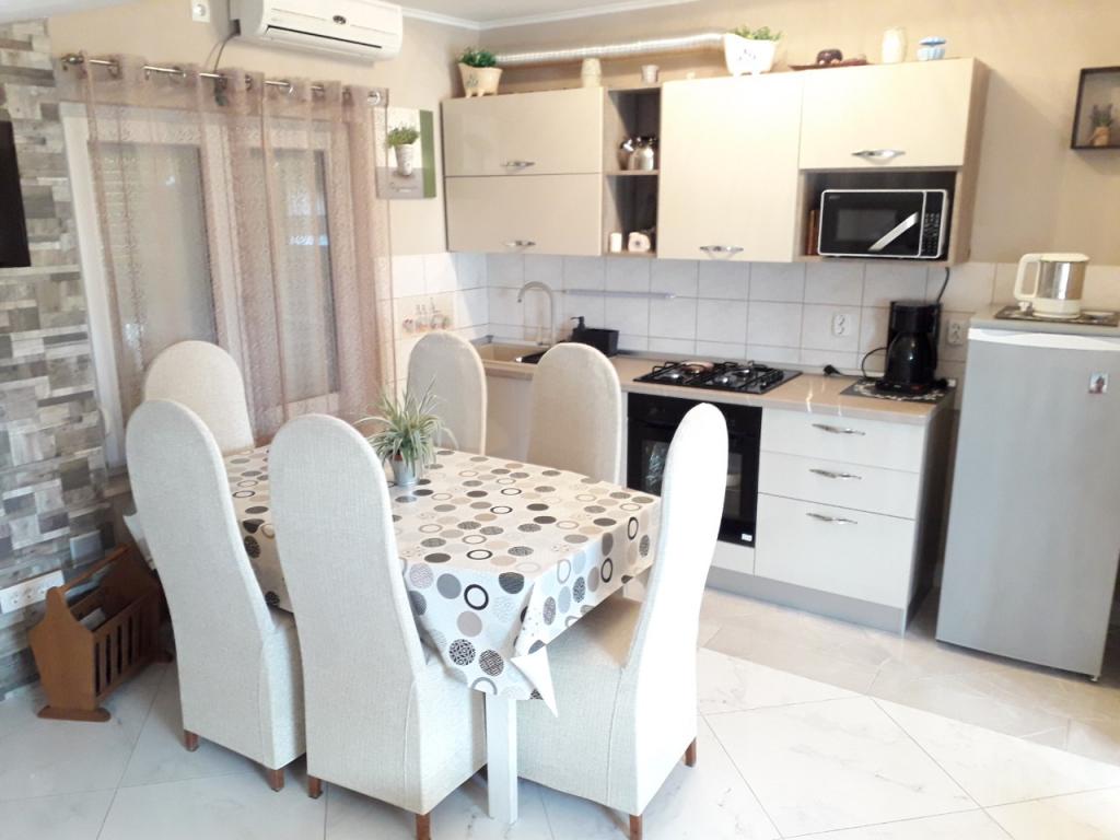 Tovább Kevesebb képekAz ár nem tartalmazza a légi, 6,00 euro naponta, és gyöngyök mosógép mosás után 4,00 eura.Cijena fűtés a téli hónapokban 5,00 euró naponta. Háziállat 6,00 euró naponta. Érkezés Távozás szombaton-vasarnap.Prilikom foglalási előleg 10% -át.