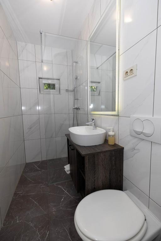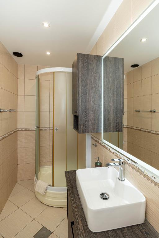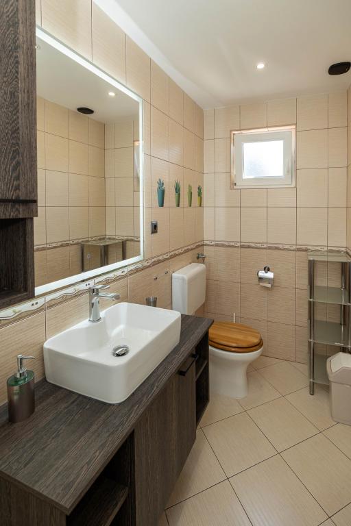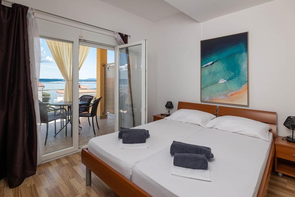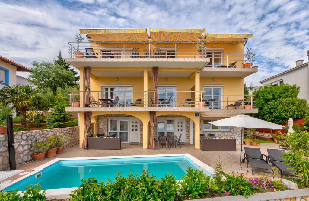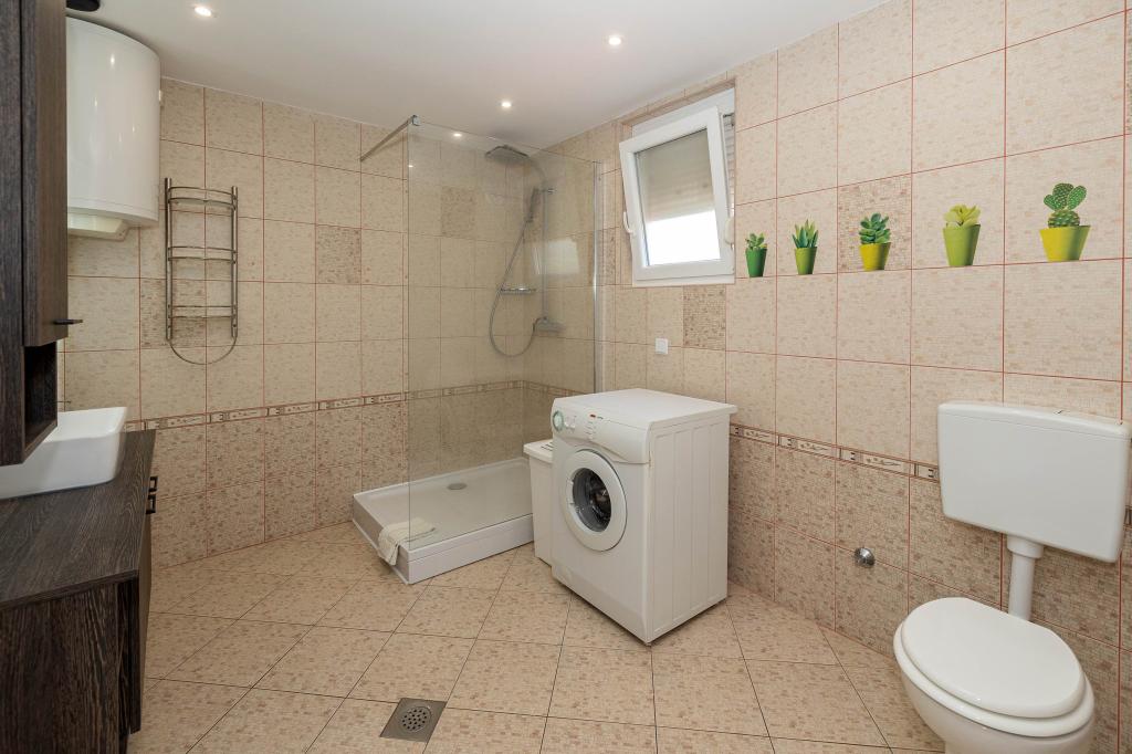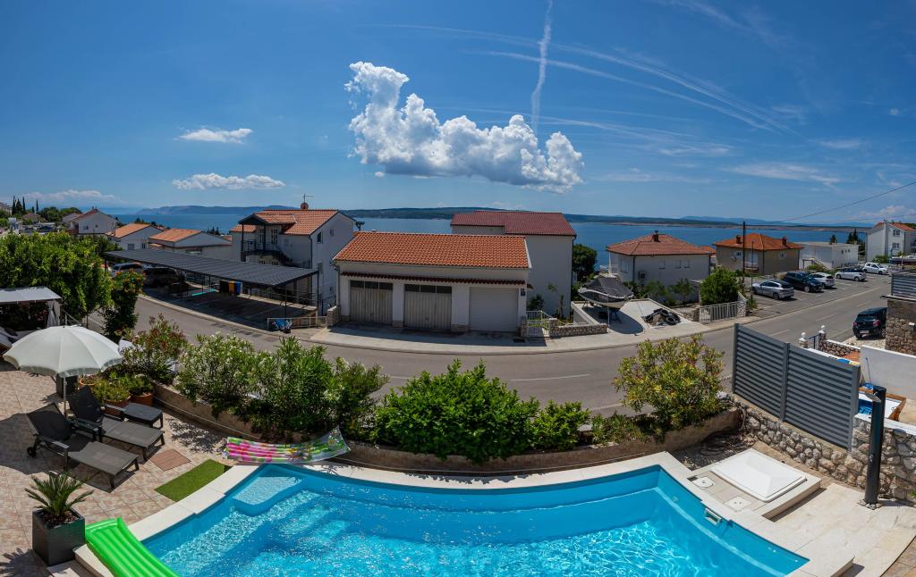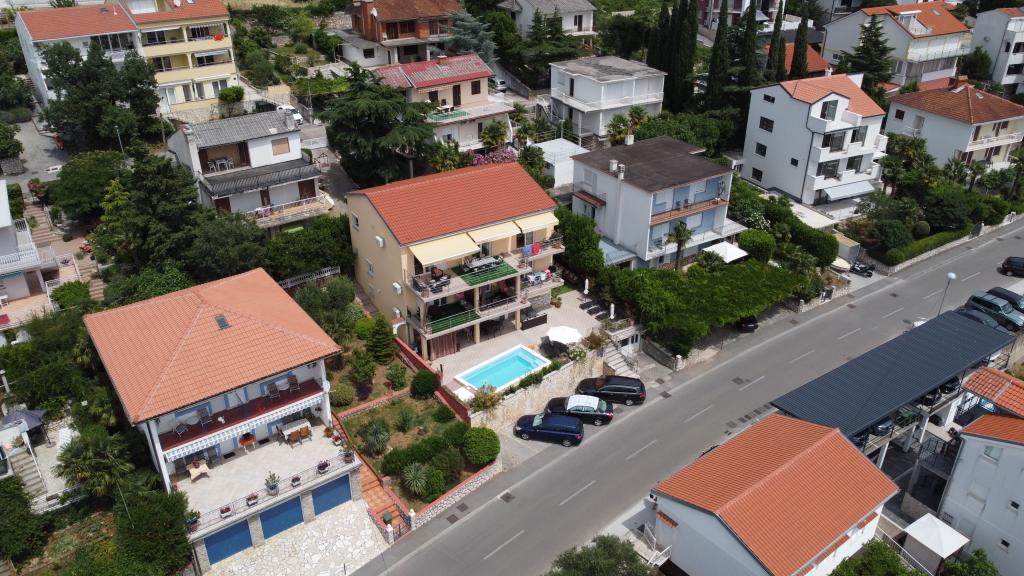 A modern és jól felszerelt apartmanokkal rendelkező ház a tengertől a második sorban található, étterem, piac és pékség közelében. A létesítményhez tágas terasz tartozik medencével, nyugágyakkal és szabadtéri grillezővel. A ház előtt parkoló áll a vendégek rendelkezésére. A földszinten található egy stúdió apartman A1 (ID:45200) és apartman A2 (ID:45382) két hálószobával, két fürdőszobával és egy tágas nappali konyhával. Az 1. emeleten az A4-es (ID:45381), A5-ös (ID:45380) és A6-os (ID:45235) apartmanok találhatók tengerre néző kilátással, az utolsó emeleten pedig az A7 (ID:45234) penthouse apartman, mely kivételes kényelmet biztosít.