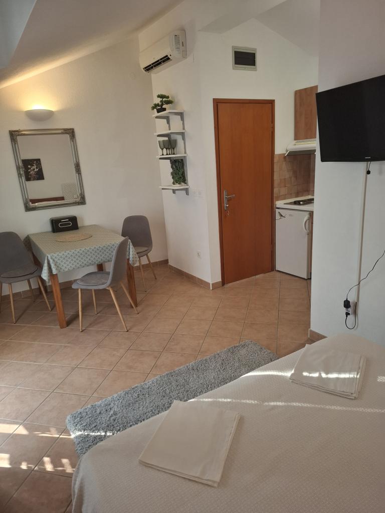 A család 16 éves fia. Legyen 11 napon át június végén - július 2016. Lakás, gyönyörű kilátással a tengerre és a hegyekre. Studio + 1 légkondicionált, tiszta, illatos, jól karbantartott és jól felszerelt, új készülékek. Az a képesség, hogy egy nagy tégla grlia. A tulajdonosok nagyon barátságos és udvarias. Mindig úgy tálalva. Spot azoknak, akik a békét. Jó kiindulópont kirándulások és fedezze fel a közeli falu. A választás a két strand kavicsos -kamienne. A látnivalók a sziklák és barlangok található a tenger. Közel a kis kikötő jachtok és motorcsónakok, számos üzlet és étterem található. Üdülés úgy gondoljuk, hogy nagyon sikeres. Goran, mi önt és kedves családját.