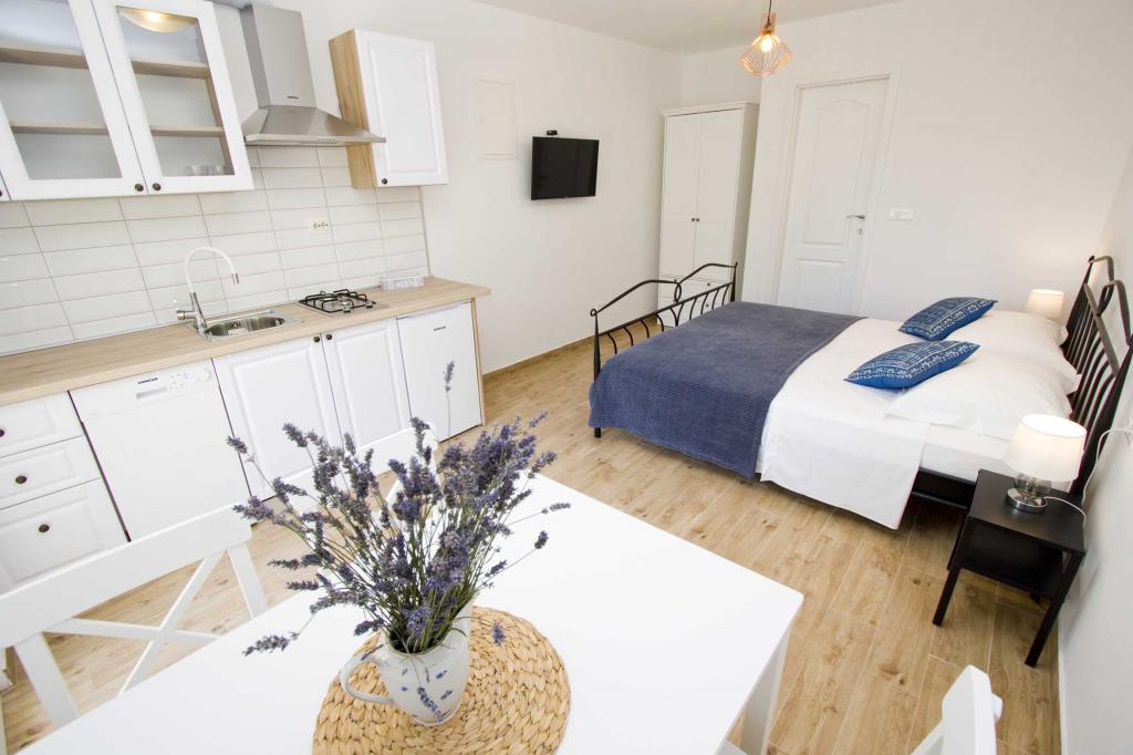 Az Apartments Rustica 20 méterre található a tengertől, egy hagyományos dalmát tavacskában, Drasnice kisvárosában. 11 fő számára kínál szállást három különálló apartmanban, és az egész házat bérelhetők. 3 szállásegységből állnak - két tengerre néző apartmanból és egy stúdió apartmanból. Az apartmanok mindegyikéhez terasz tartozik, és a ház tetejére van egy terasz, ahonnan gyönyörű kilátás nyílik a tengerre és a közeli szigetekre. Minden apartman külön bejárattal rendelkezik, légkondicionált, mosogatógéppel és edényekkel felszerelt, valamint síkképernyős műholdas TV-vel rendelkezik. Az Apartments Rustica számos strand közelében található, 50 méterre a Čevajele strandtól és 200 méterre a Soline strandtól, valamint 200 méterre a legközelebbi szupermarkettől, étteremtől és kávézótól. Az Apartments Rustica egy csendes és nyugodt nyaralást tesz lehetővé egységeikben, amelyek a környezetüknek megfelelően vannak díszítve.
