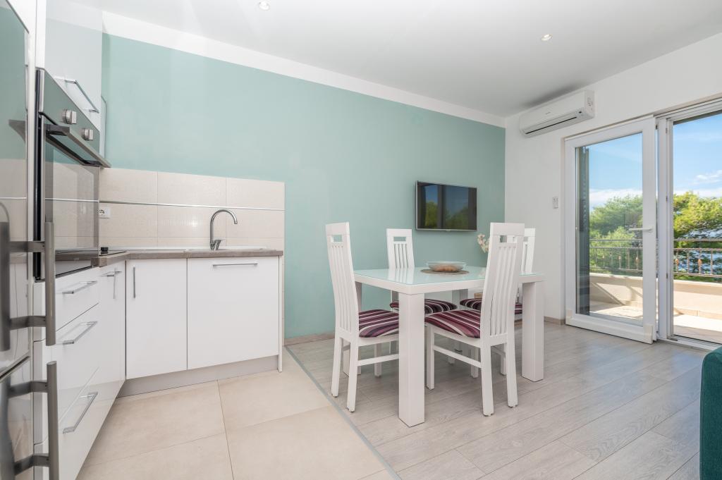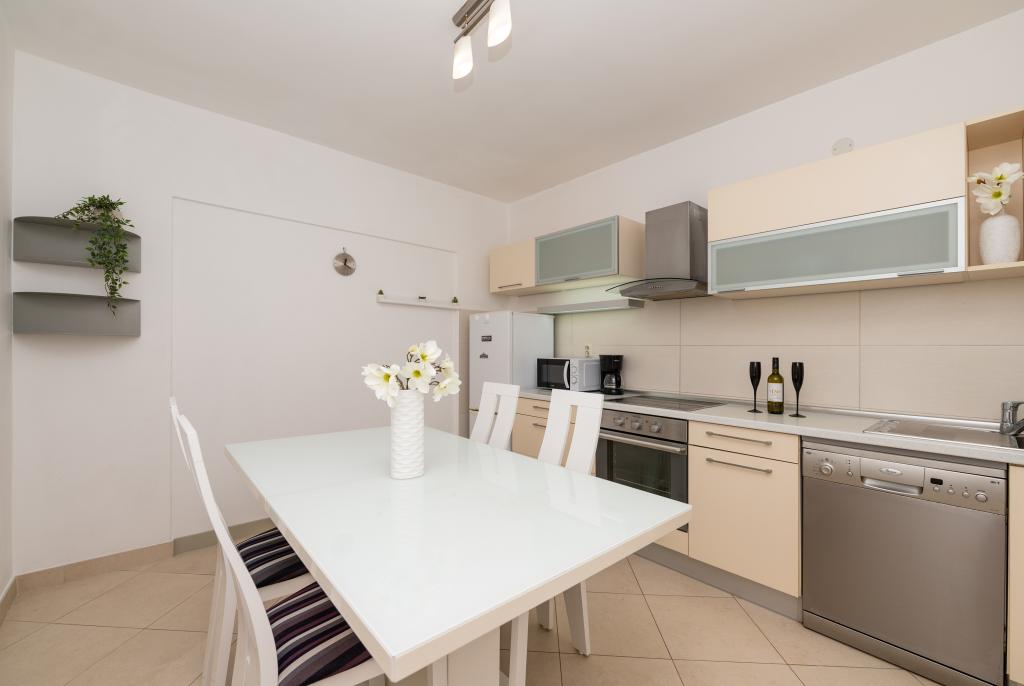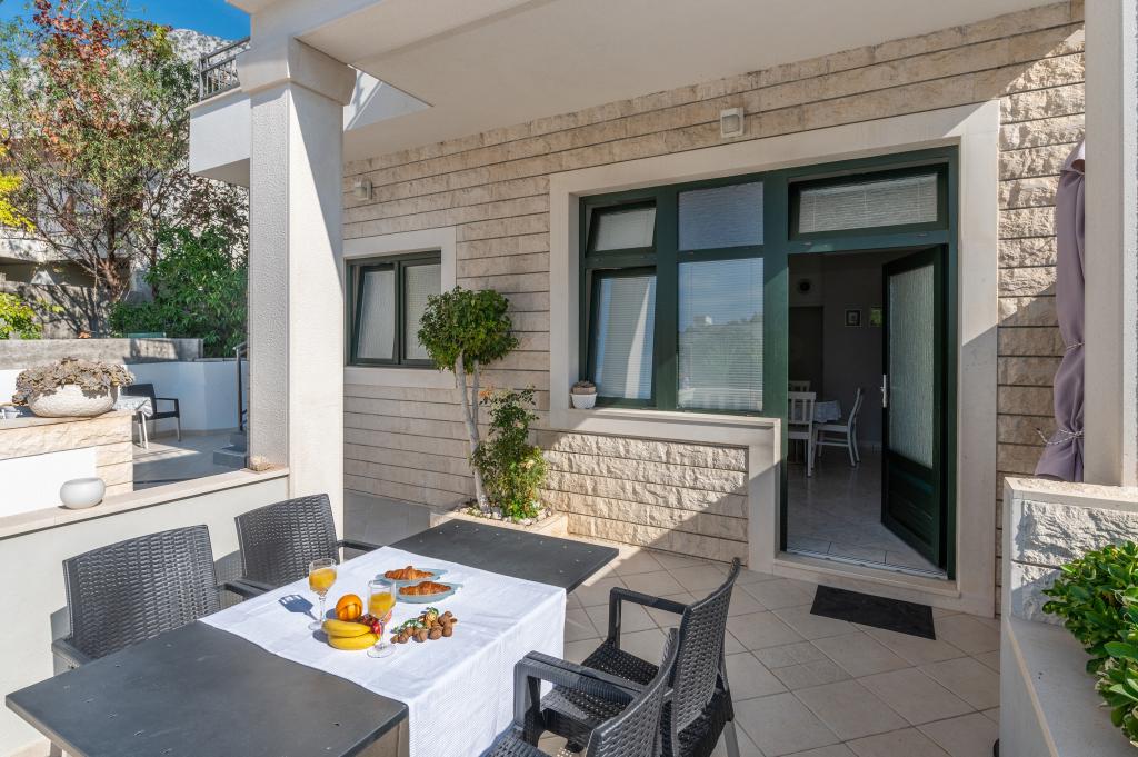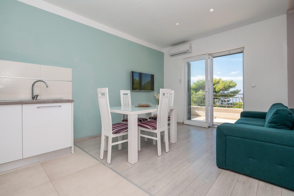 Drašnice, egy kis turistaváros Makarskától tíz kilométerre délre, Dubrovnik felé vezető úton, ideális családi nyaraláshoz. A ház csendes környezetben található, 150 m-re a tengertől. Minden apartman saját parkolóval, légkondicionálóval, TV-vel, wi-fivel, mosógéppel, mosogatógéppel rendelkezik