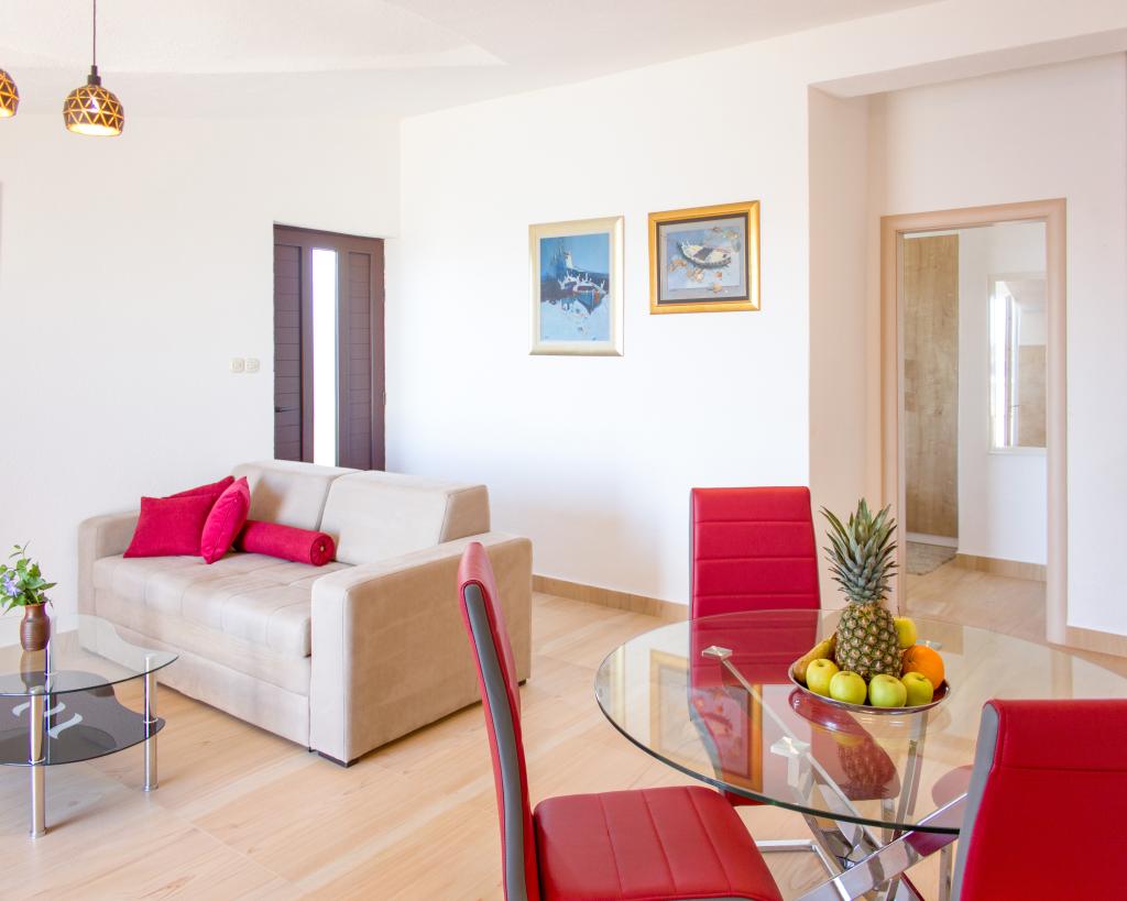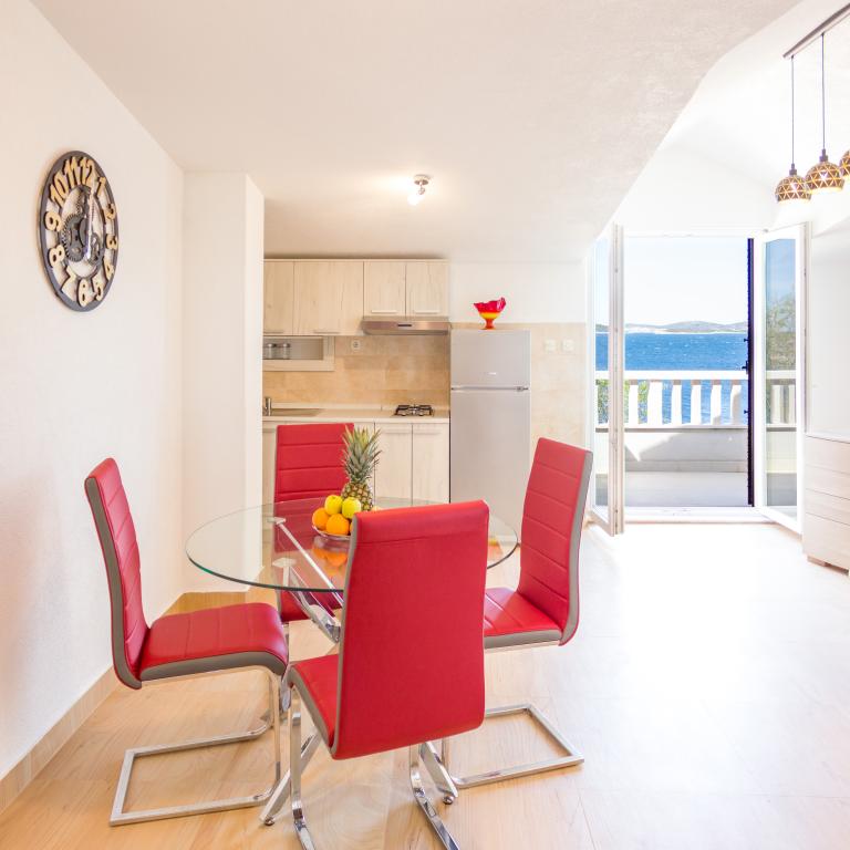 A Val és Sol apartmanok Drvenik Mali szigetén, a Mala Rina-öbölben találhatók, az első sorban a tengertől, 70 méterre a parttól. A Drvenik Mali szigetén található apartmanok felszerelt konyhával, étkezővel, TV-vel és kanapéval ellátott nappalival, ventilátorral felszerelt hálószobával, gyönyörű kilátással rendelkező terasszal és hajszárítóval felszerelt fürdőszobával rendelkeznek. Mindkét apartman tengerre néző. Lehetőség van a ház teljes emeletének bérlésére is. A Drvenik Maliban található Val és Sol apartmanok ingyenes parkolást, grillezési lehetőséget és ingyenes internetet kínálnak. Drvenik Mali szigetén korlátozott tartalmú üzlet, étterem és kávézó található a strandon. Ezért erősen javasoljuk, hogy hozzon magával ételt, italt és egyéb szükséges holmit.