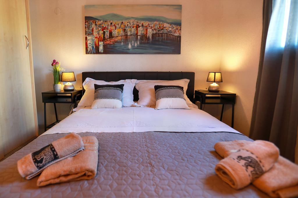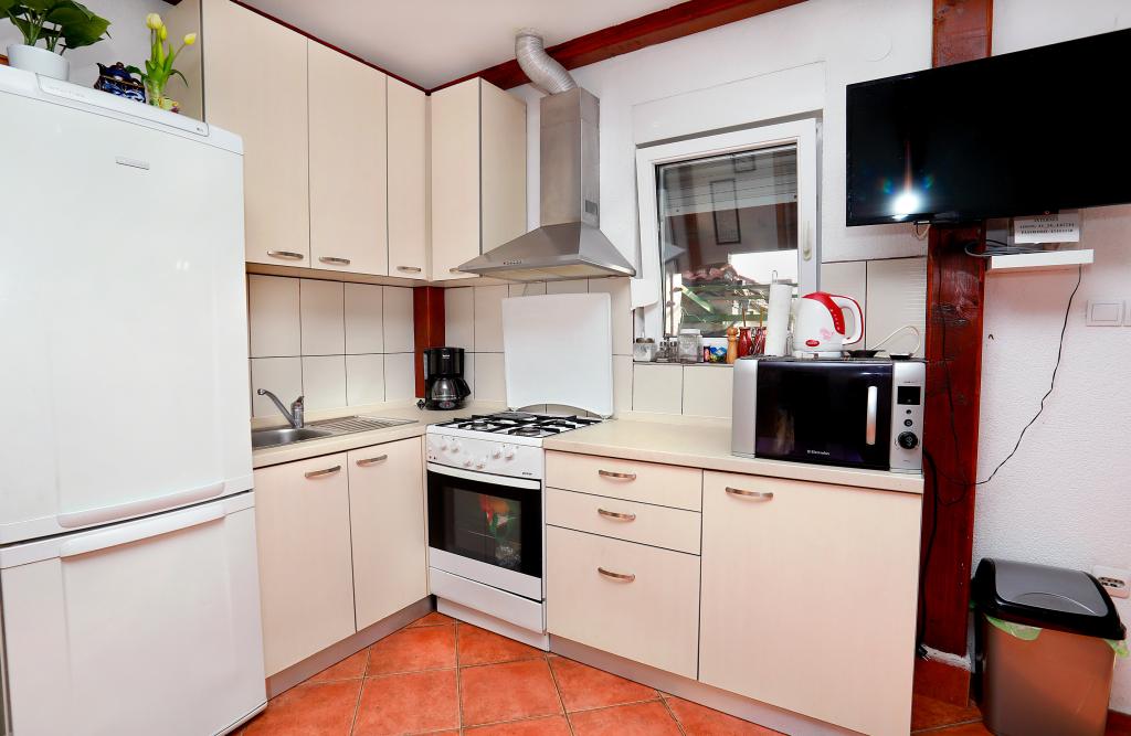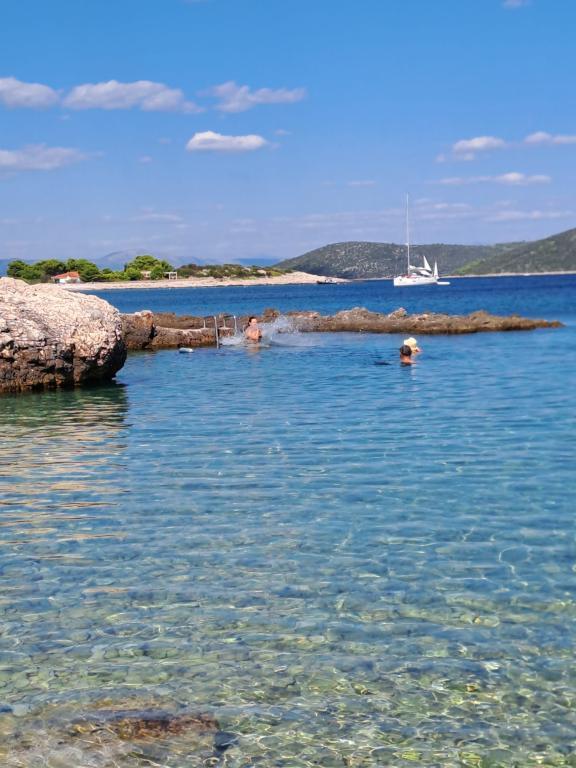Erről a helyről: A Veronika nyaraló tökéletes hely egy Robinson-stílusú kiruccanáshoz Drvenik Mali szigetén, Közép-Dalmáciában, közel az UNESCO által védett Trogir városához. A szigeten található az egyik legszebb homokos strand, a Vela Rina, a Kék Lagúna stílusában. Érintetlen természetben találhatóunk, a homokos tengerparti öböl és a Kalafate-fok felett, így ingatlanunkból csodálatos kilátás nyílik a nyílt tengerre; isteni hajnalban és naplementében. Tér: Ingatlanunk egy szintes, teljesen felszerelt és légkondicionált ház, udvarral, melyben egy napos terasz gyönyörű kilátással a tengerre. Egyéb megjegyzések: Az ingatlanon belül két különálló ház található, a Veronika és a Šimun, melyek külön-külön vagy együtt is bérelhetők, de az egyes házak elhelyezkedésének köszönhetően a vendégeknek magánéletük van. Mindkét egységhez tartozik egy bekerített, közös parkoló és egy tágas taverna - grill.