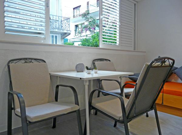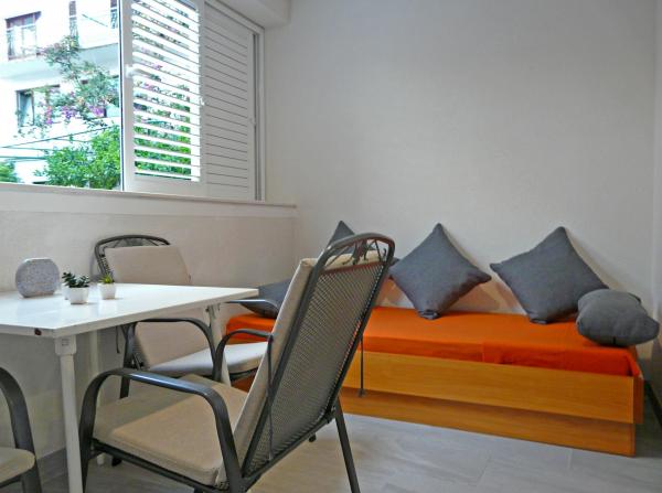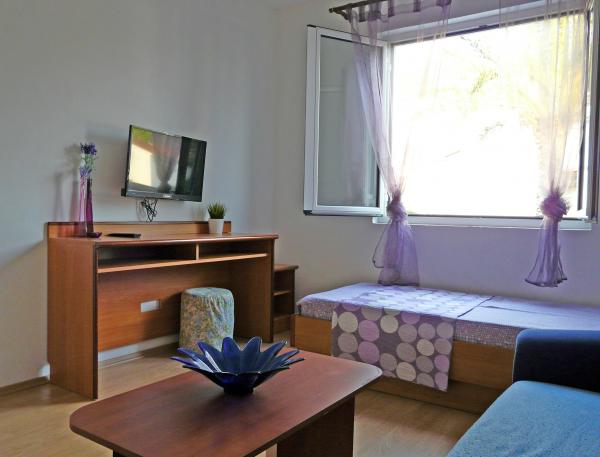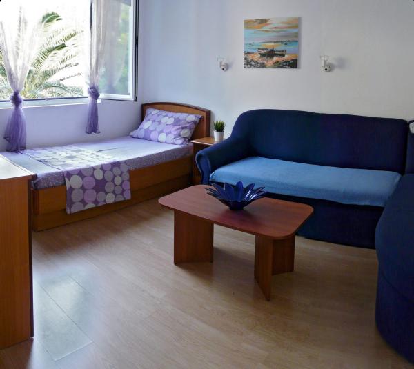 Családi ház három modern apartman (2 apartman a második emeleten, tengerre néző erkéllyel és 1 földszinti lakás külön bejárattal és parkolóval). A ház egy bolt. A házzal szemben van egy kocsma-étterem. A tengertől való távolság, a strand és a központ egy 3 perces sétával elérhető. Ingyenes wi-fi. Minden apartman légkondicionált, felár nélkül. A parkolás benne van az árban. Welcome :)