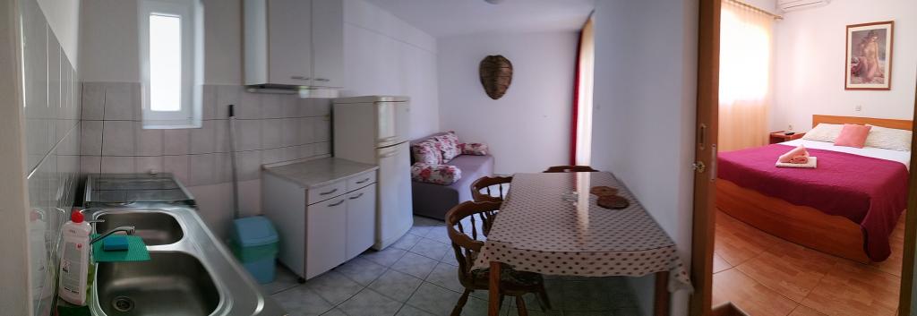 Nagyon jó elhelyezkedés, mindenhez közel, a tenger több tucat méter közelében, barátságos tulajdonos, tiszta apartman konyhasarokkal, alapfelszereltséggel felszerelve ..... terasz kilátással a hegyekre és a tengerre .... Azt javaslom, jól pihenhet