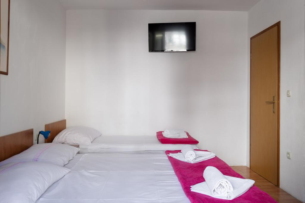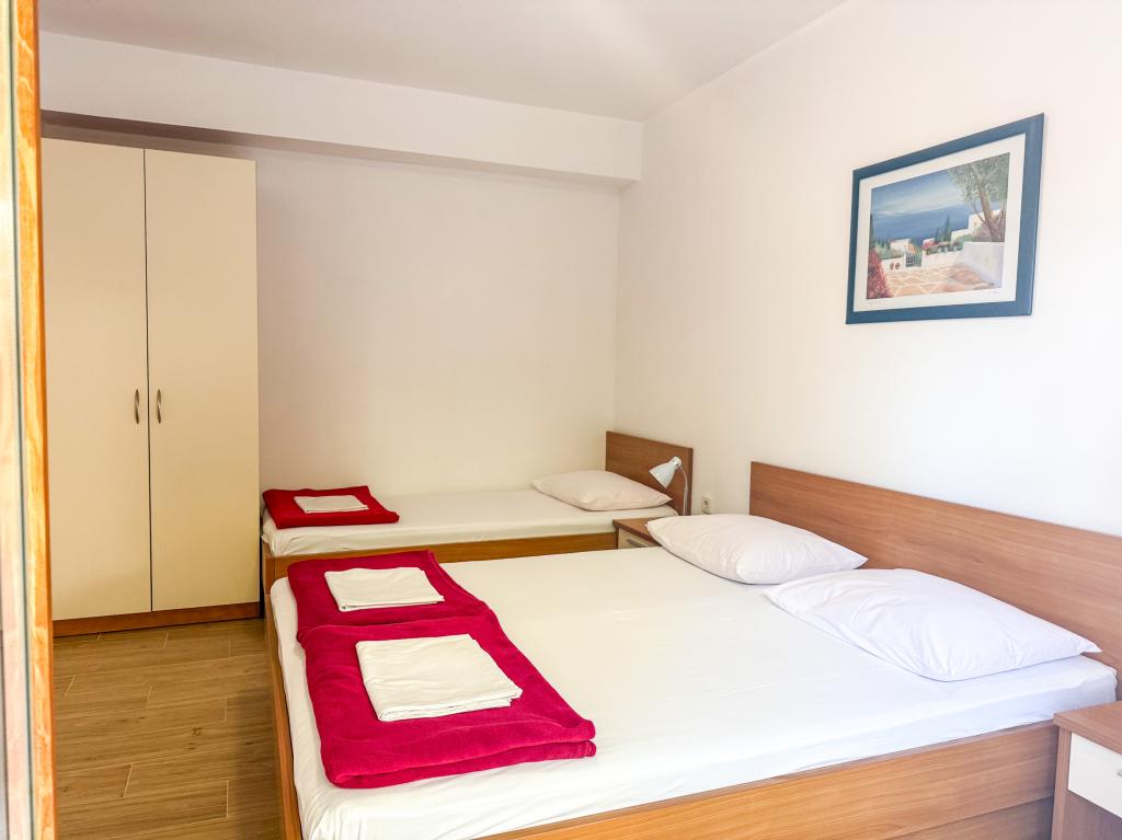 Üdvözöljük a Niko apartmanokban. Drvenik egy gyönyörű és békés hely családok vagy fiatalok számára, akik békés és napsütéses nyaralást szeretnének eltölteni. Drvenik a makarskai riviéra egyik gyöngyszeme, ideális hely a családi nyaraláshoz, valamint a mindennapi kötelezettségek és stressz elől való meneküléshez. Futástávú séta, szabadtéri edzőeszközök, kerékpárutak, túrázás sziklás terepen, sziklamászás, búvárkodás - ez csak néhány a kikapcsolódási lehetőségek közül, ha aktív pihenésre vágyik, amivel a barátságos házigazdák bemutatják vakáció. Az Apartments Niko 150 méterre található a tengertől és a strandtól. Az üzlet a háztól 50 m-re található. A létesítmény 8 különböző méretű és kapacitású apartmant kínál.