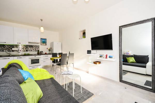 Üdvözöljük az új, luxus, déli fekvésű, napfényes, nagy terasszal rendelkező, teljesen felszerelt egyszobás lakásban, mindössze 10-15 percnyi sétára az Óvárostól! A lakásban minden megtalálható, ami a kényelmes és kellemes tartózkodáshoz akár hosszabb ideig is szükséges (sütő, mikrohullámú sütő, vízforraló, kávéfőző, nagy hűtőszekrény, fagyasztó, főzőlap, edények, mosogatógép, mosógép, hajszárító, vasaló, vasalóasztal, TV, wifi, klíma...). A vendégek külön bejárattal és nyugalommal rendelkeznek. Ideális két személynek, mert van benne egy hálószoba king-size ággyal, magas anatómiai matraccal, de két további személy elszállásolására alkalmas, mert a nappaliban van egy kanapé, ami egy kényelmes 160x200-as ággyá kihajtható. Kiváló elhelyezkedés, csendes, biztonságos, a várostól kb 10 percre van, és az óvárosba nem kell autó, de aki nem szeret sétálni, annak kb 100 méterre van egy buszmegálló. a lakás, valamint a 3-as és 3a buszok közvetlenül Pile-be mennek, a buszpályaudvarra és a fő kikötői mólóra (a szigetekre való kirándulásokhoz).