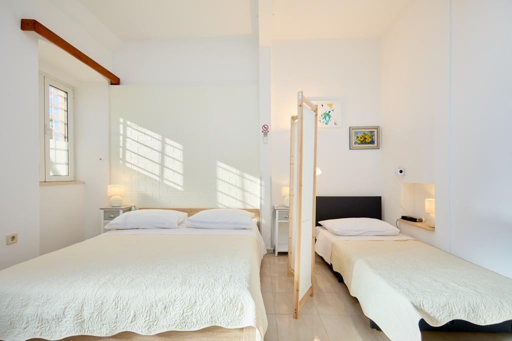 Egy 400 éves dubrovniki nyaraló kisebb szállodává alakítva, két kényelmes apartmannal, tengerre néző kilátással és nagy terasszal. Szálláshely a város legvonzóbb részén, Ploče-Iza Grada-ban - mindössze 70 méterre a Banje strandtól és mindössze 5 perc sétára az óváros központjától. Csak 3 perc sétára az első szupermarket és buszpályaudvar . séta a városi kikötőbe, ahonnan az összes kirándulás indul, valamint a hajó Lokrum szigetére Ideális gyermekes családok és párok számára, akik különböző dátumokat ünnepelnek - romantikus hangulat, amit nem szeretne kihagyni. FIGYELEM - Az árak fixek kedvezmények nélkül az éjszakák számát