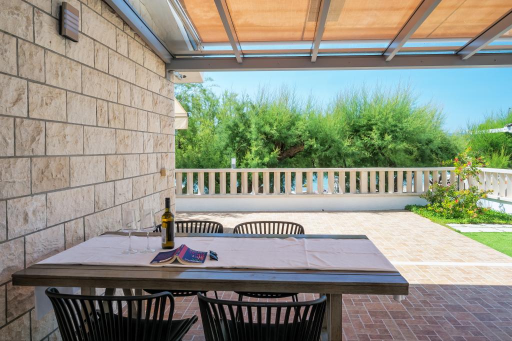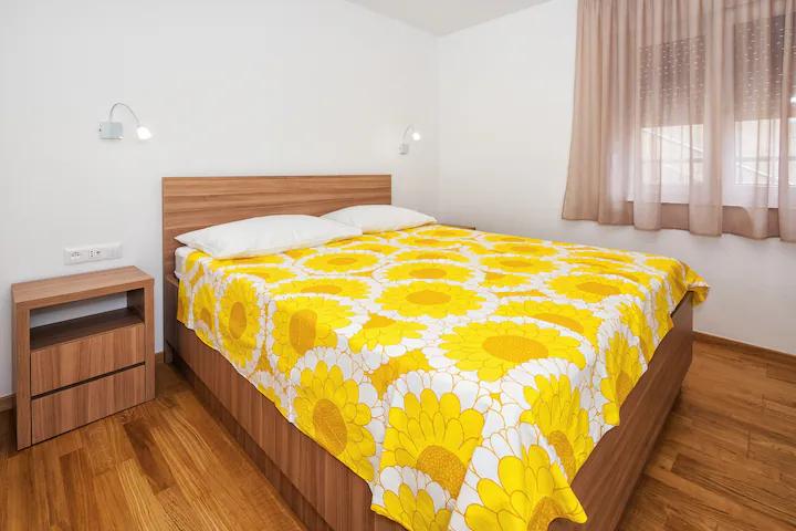 Az Apartments Bruna szállást kínál egy házban, mindössze néhány méterre a tengertől és a homokos strandtól. Fontos megjegyezni, hogy 2 apartmant kínálunk a ház földszintjén, közvetlenül a tengerparton - ideális idősek és kisgyermekes családok számára. A házban néhány lépésnyire mögötte (természetesen a főút alatt), a második emeleten (amelynek erkélyéről nyílt kilátás nyílik a tengerre és a szigetekre) újonnan felújított apartmanokban kínálunk szállást. Töltse nyaralását teljesen felszerelt apartmanokban, közvetlenül a tenger mellett, tamariszkusz fák árnyékában, egy gyönyörű homokos tengerparton!