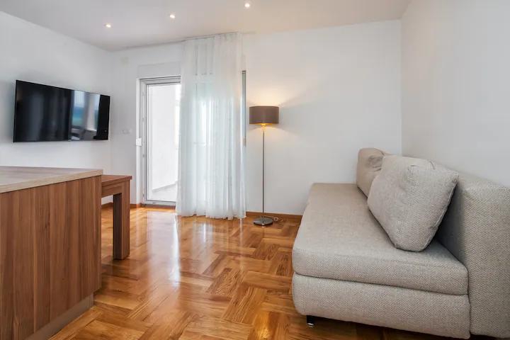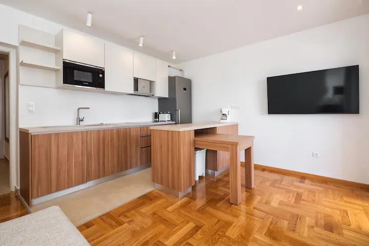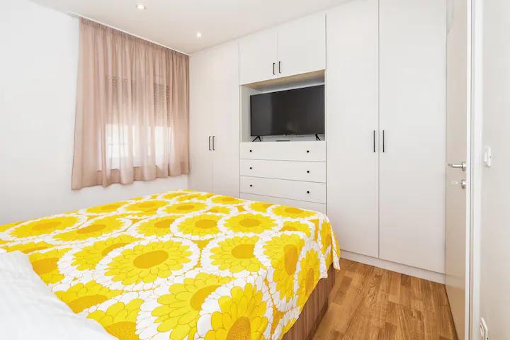 Ajánlom ezeket az apartmanokat. Ez egy gyönyörű hely hegyekkel, közvetlenül a tengerpart mellett. Túraútvonalak és gyönyörű kilátás. Kiváló bárok és pizzériák szomszédságában, gyönyörű homokos strand, a gyermekek számára készült, szállás közvetlenül a tengerparton. Szuper tiszta lakások. Szívesen visszatérnénk ide valamikor.